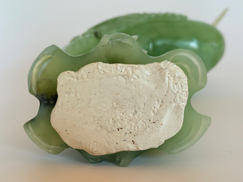 This sculpture blends the grace of avian symbolism with the enduring prestige of genuine jade—long revered for its purity, resilience, and spiritual resonance. The crane, emblematic of longevity and noble spirit in Asian tradition, is carved with exceptional precision from a single block of jade. Its stylized base and traditional plug mount reinforce its authenticity and vintage character, making it a meaningful addition to any curated collection.