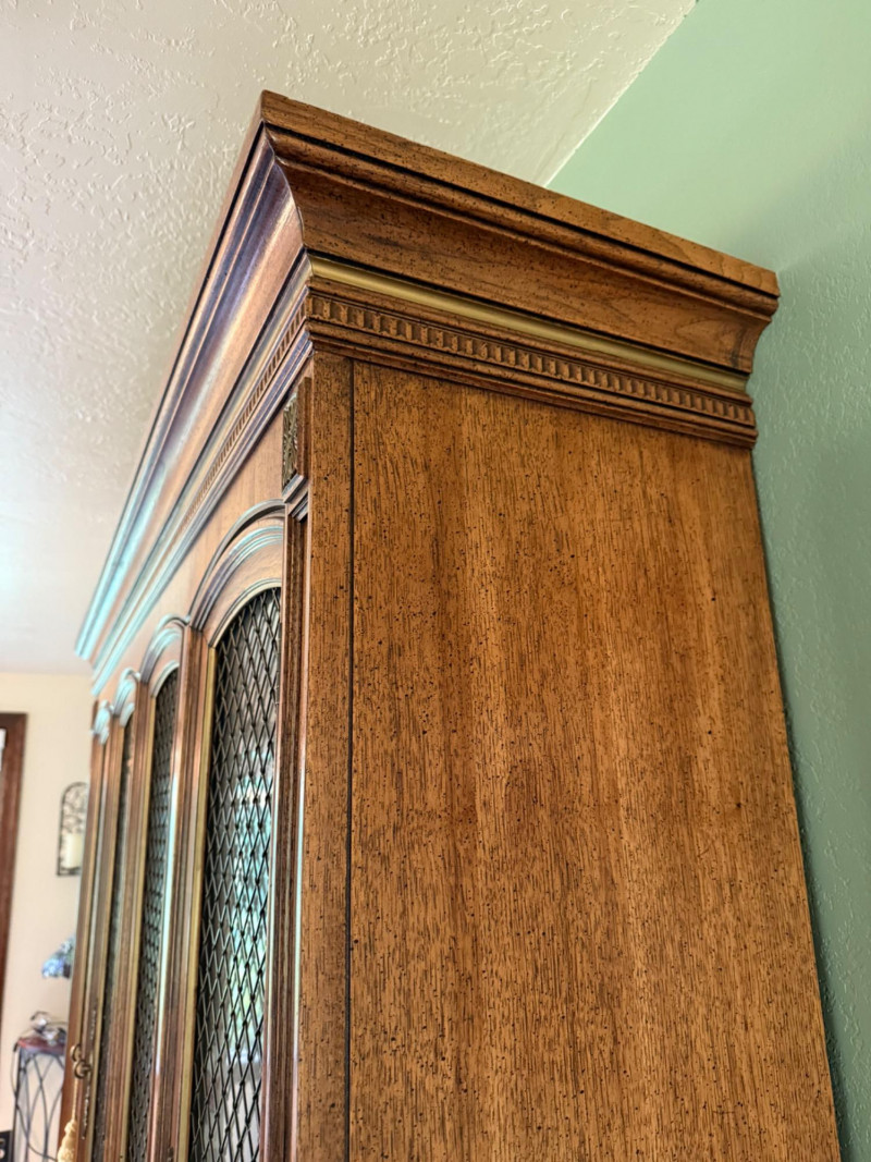 Lot # 21 - Solid Wood China Cabinet with Wire Mesh over Glass Panes
