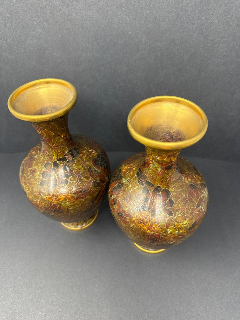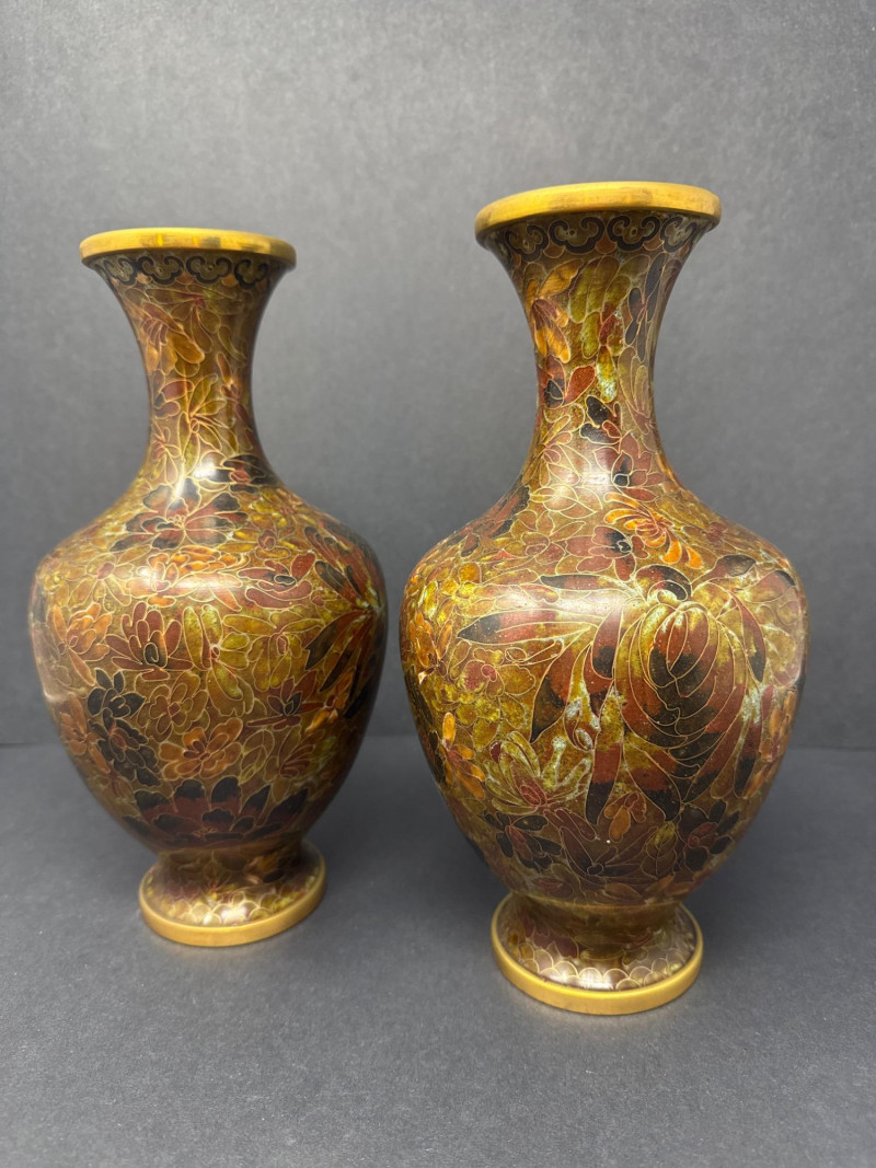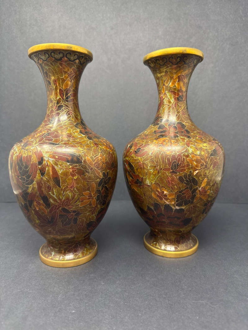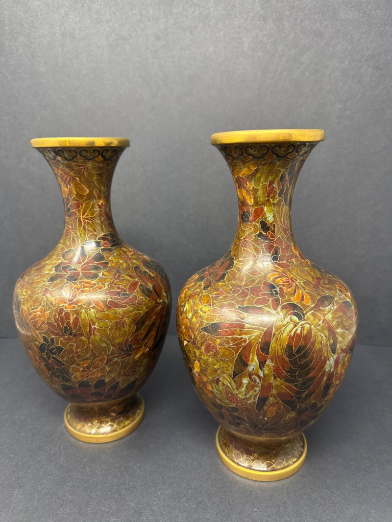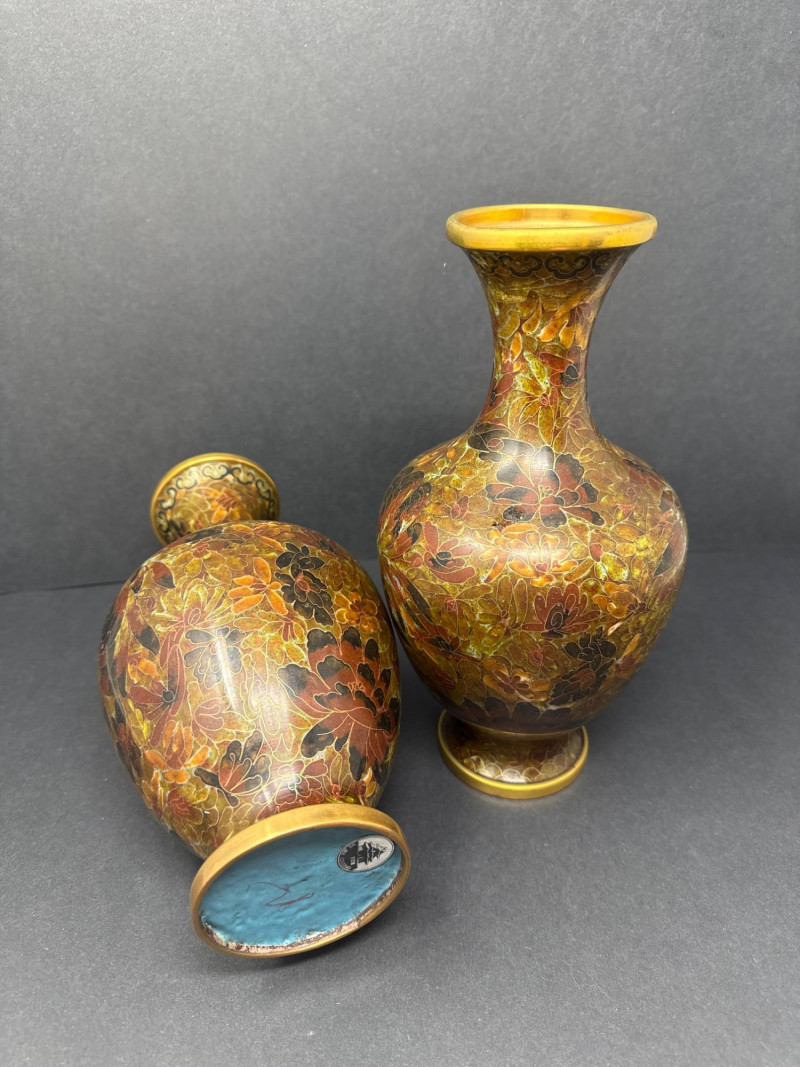 Lot # 30 - Pair of Vintage Chinese Cloisonné Enamel Vases with Floral Motif