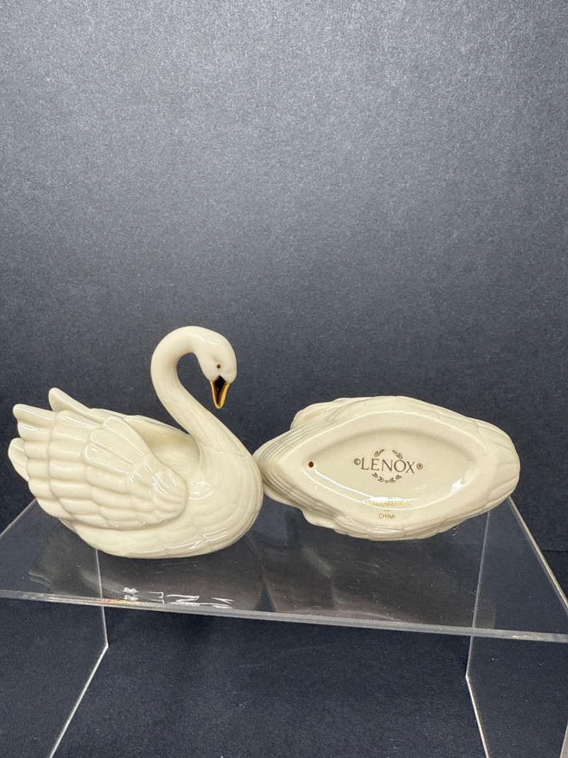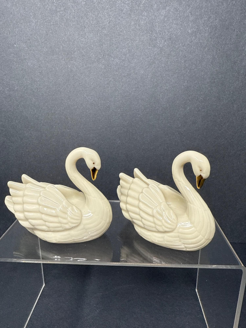 2. Pair of Lenox Ivory Swans with 24k Gold Trim
