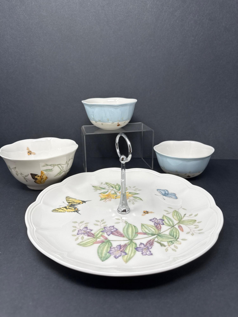 Lot # 49 - Lenox Butterfly Meadow Serving Tray with Bowls