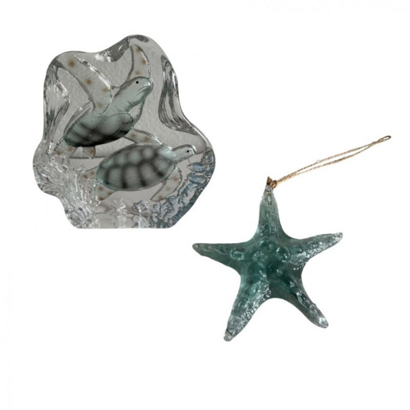 Lot # 51 - Glass Sea Turtle Sculpture & Starfish Ornament