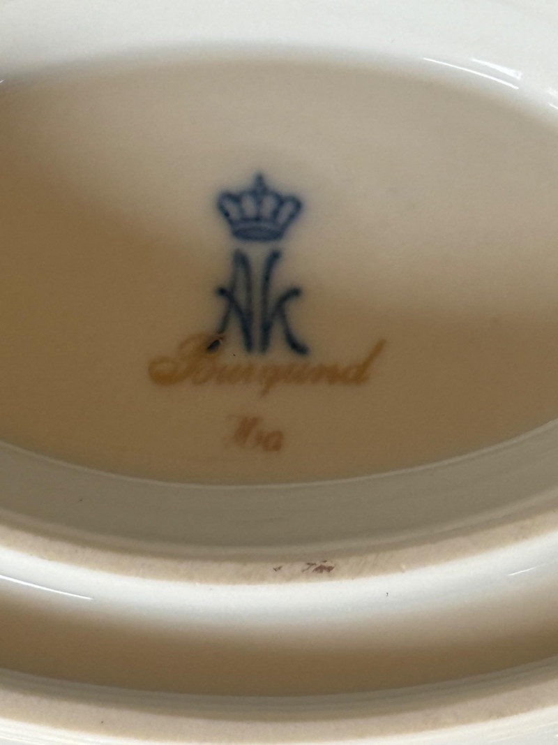 – Marked: Crowned “AK” Alboth & Kaiser Bavaria with “Burgund” pattern name