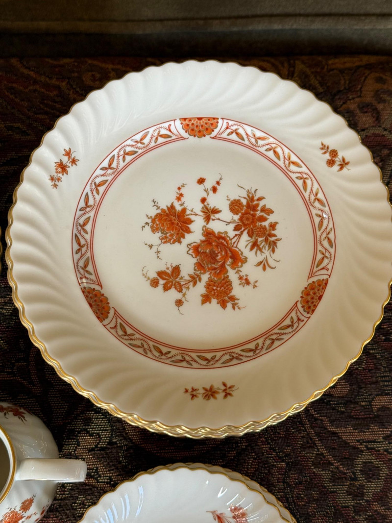 – Decoration: Transfer-printed floral design in iron-red/orange with gilt accents