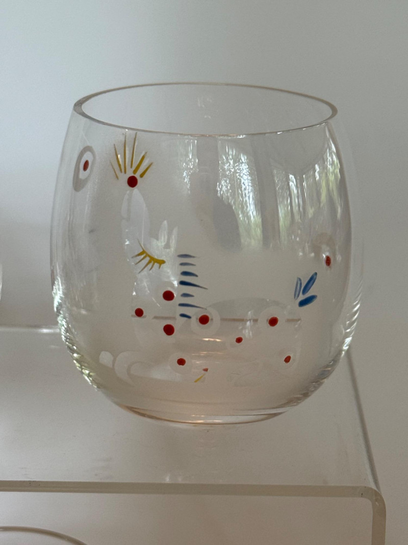 Lot # 61 - Vintage Hand-Painted Shot Glasses with Abstract Animal Motif