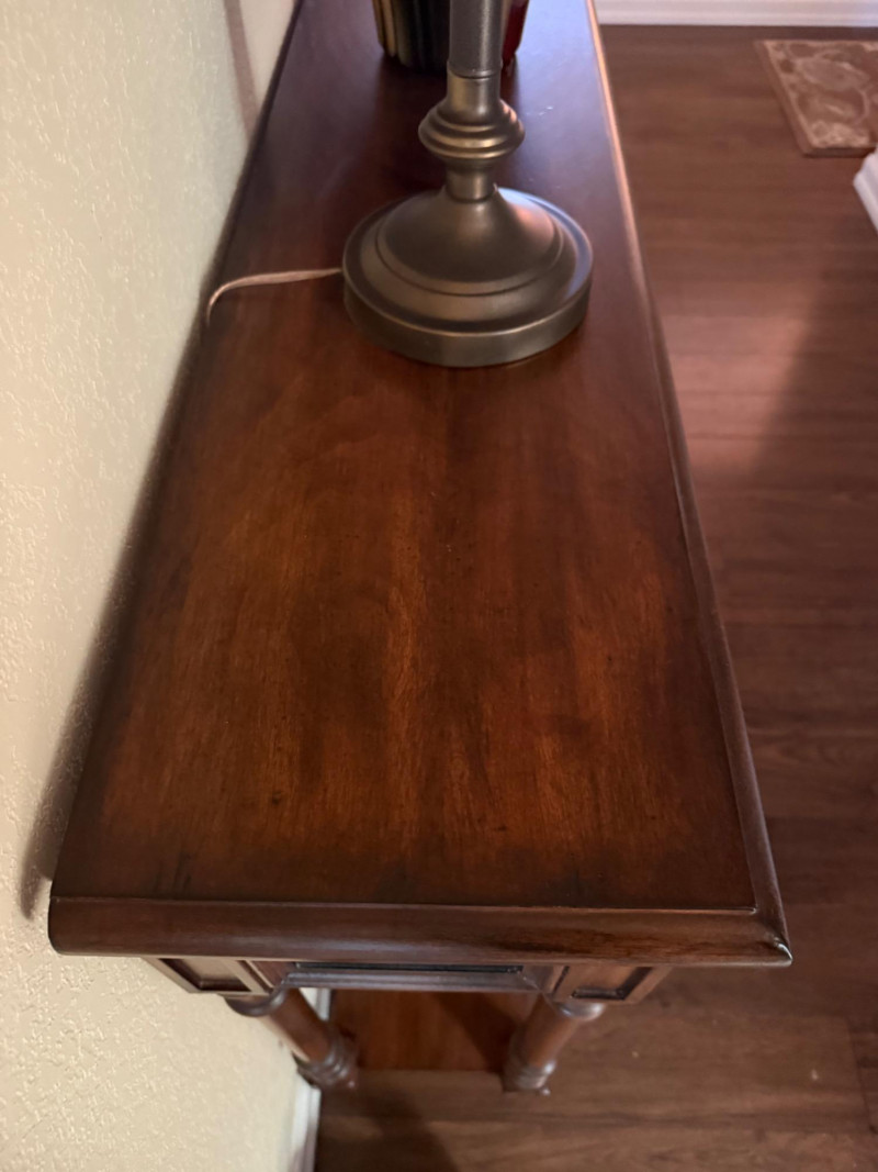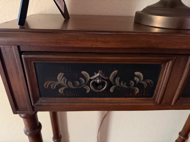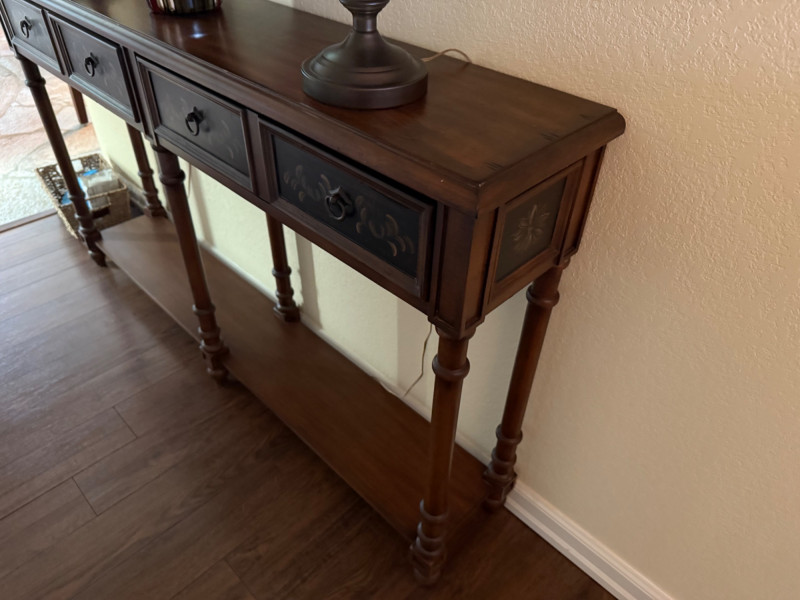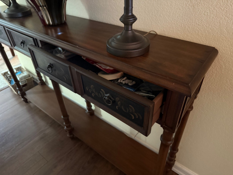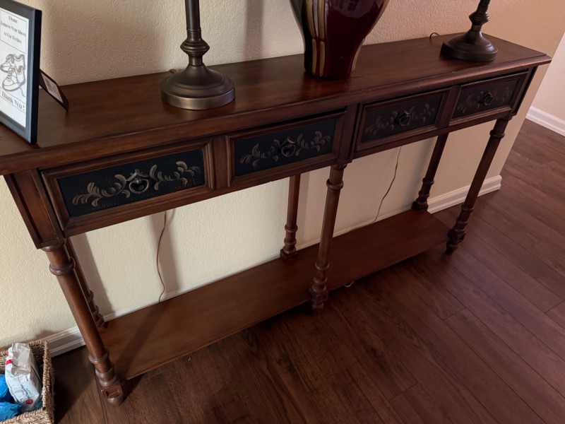 Lot # 63 - Carved Wood Console Table with Black Accented Drawers