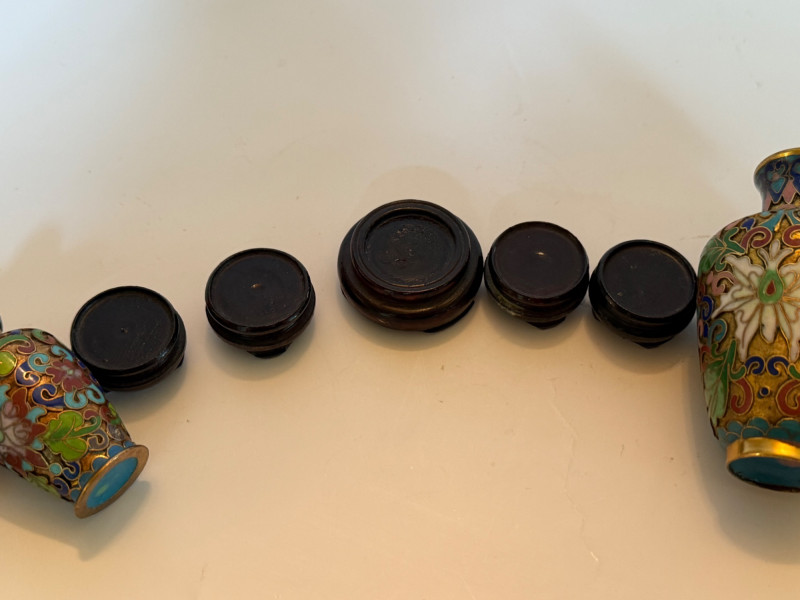 Lot # 73 - Set of Five Miniature Chinese Cloisonné Vases with Stands