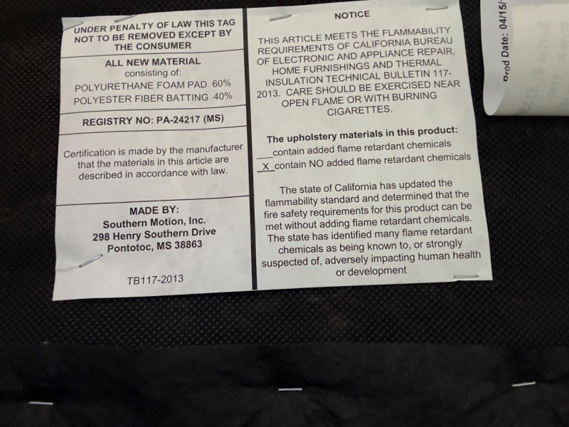 Cushioning: Polyurethane foam pad (60%) and polyester fiber batting (40%)