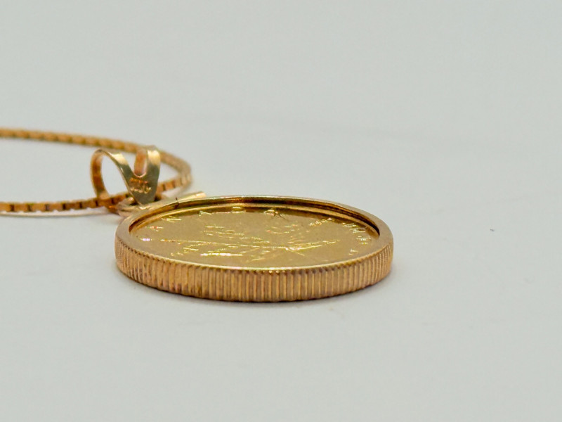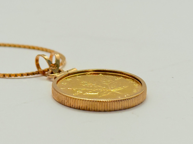 Lot # 97 - 1982 Canada $10 Gold Maple Leaf 1/4 oz Coin Pendant on 14K Gold Chain