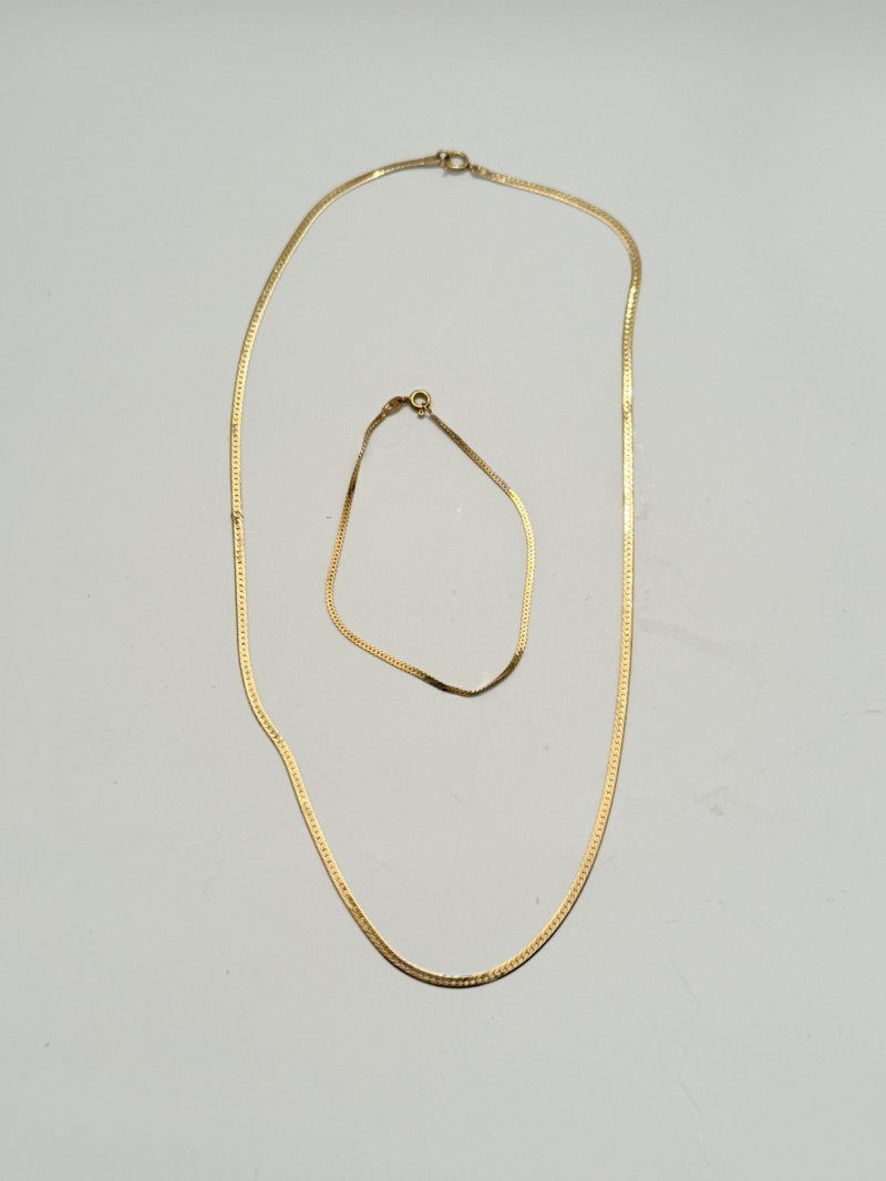 Lot # 112 - 14k Gold Necklace and Bracelet Set – Italian Herringbone Elegance