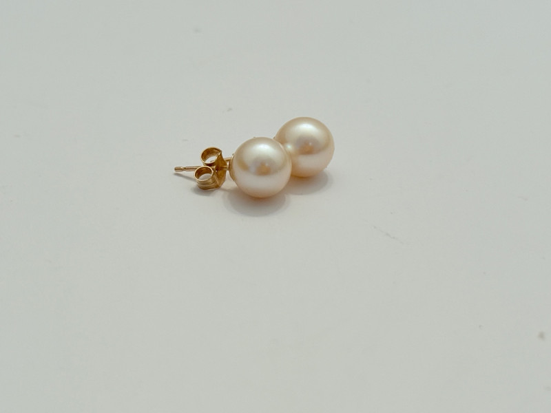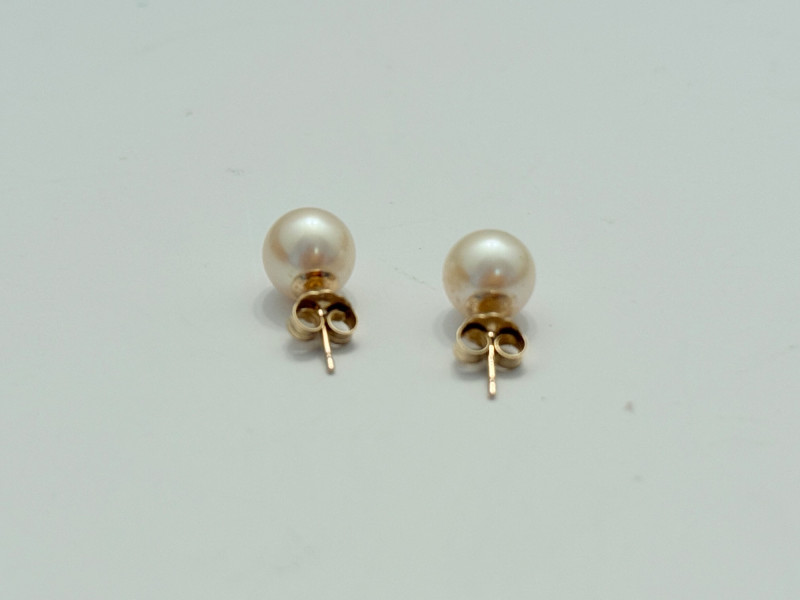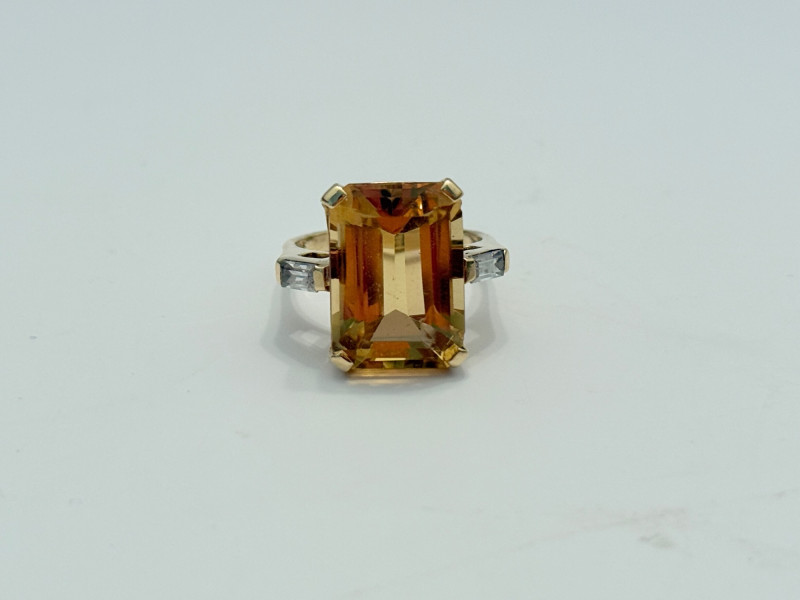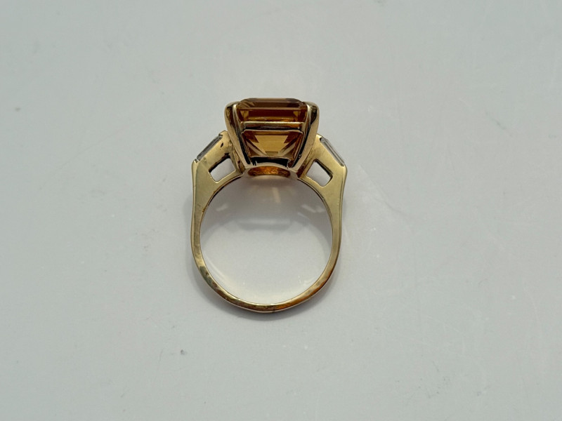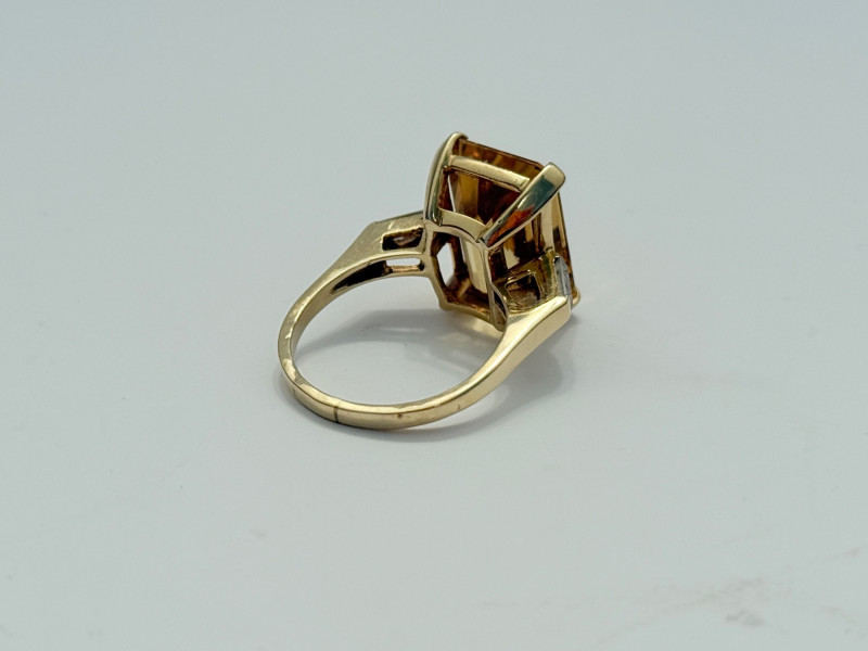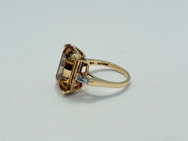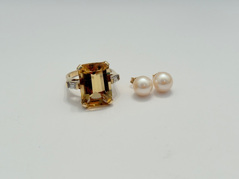 Citrine & Pearl 14k Gold Jewelry Set An elegant pairing of vibrant color and classic charm, this set includes: Gemstone: Rectangular-cut citrine Metal: 14k yellow gold with side accents Stamp: Marked “14k B&G” Size: 8 Weight: 7.4 grams Style: Round pearl studs Metal: 14k gold posts Stamp: Marked “14k” 1 Citrine 14k gold ring (size 8, stamped 14k B&G) 1 Pair of pearl stud earrings (posts marked 14k)Citrine Ring