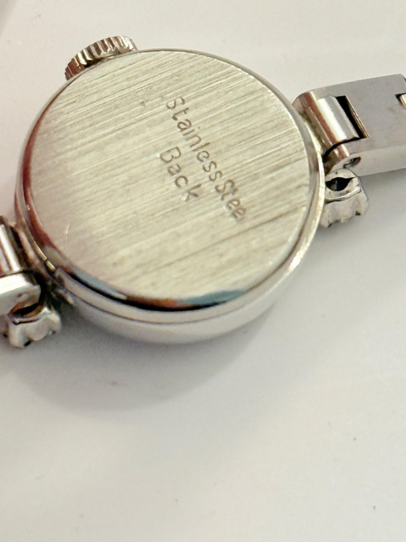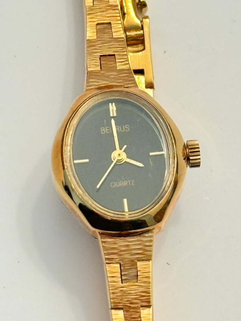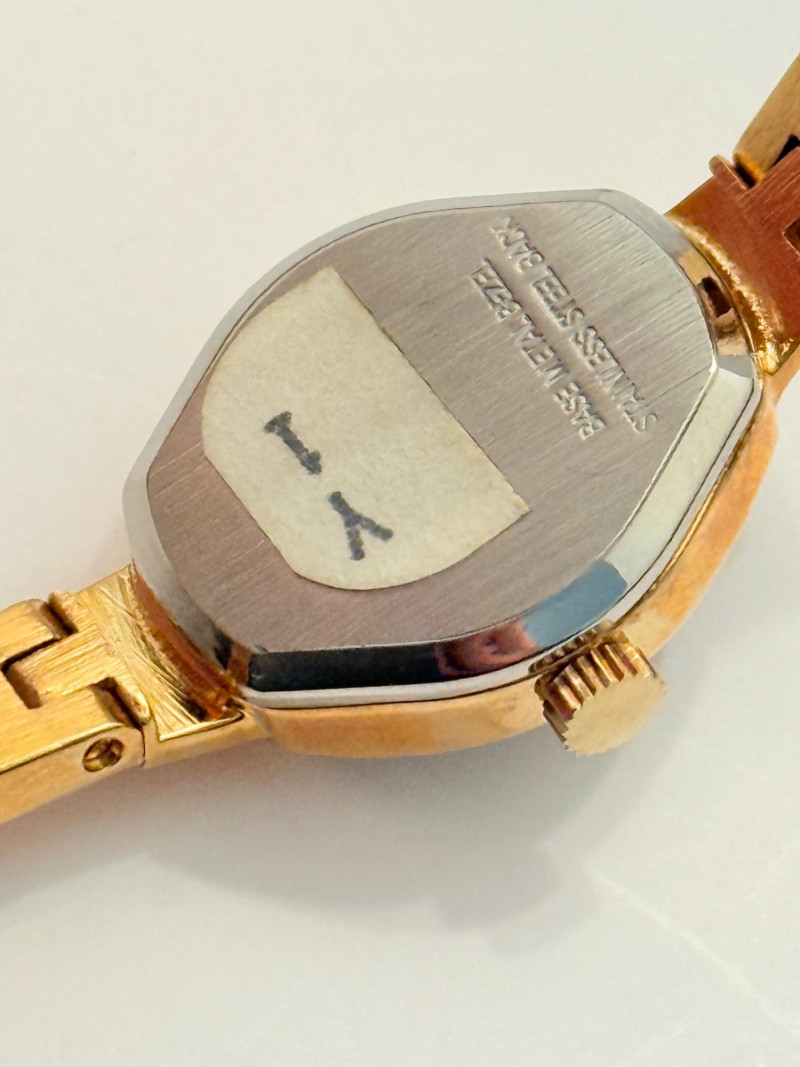 Vintage gold-tone case with mesh bracelet, mechanical wind-up, working. Benrus Ladies’ Quartz Watch (Black Dial)