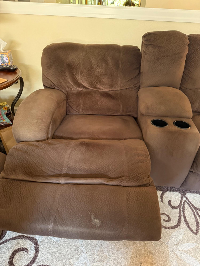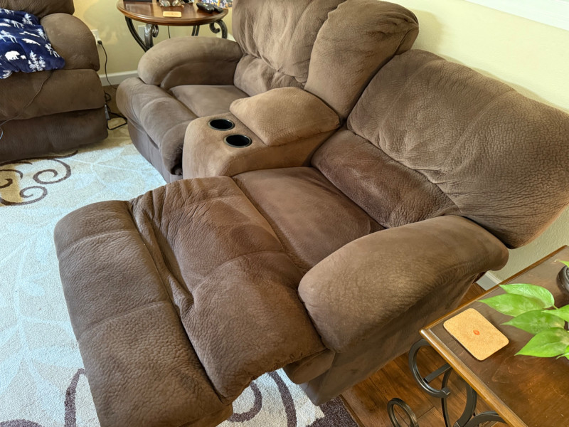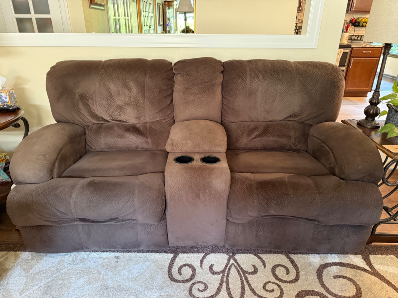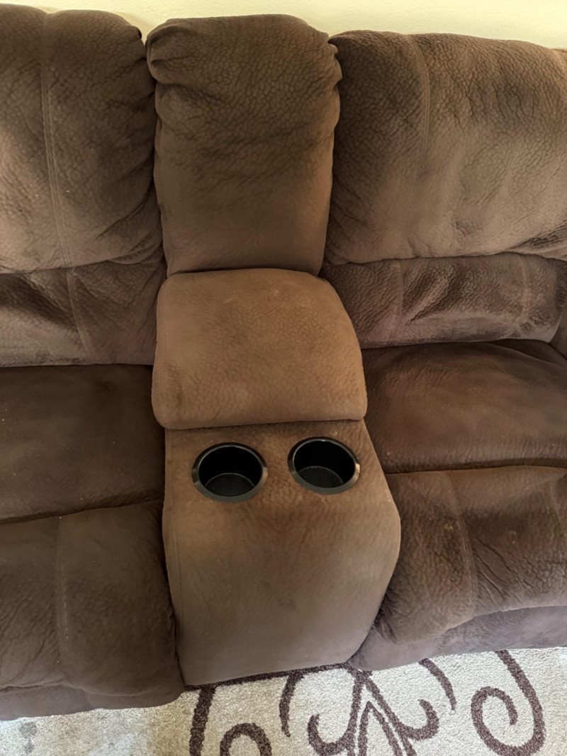 Relax in style with this dual electric reclining loveseat, wrapped in soft brown microfiber upholstery. Each seat reclines independently with the push of a button, offering personalized comfort at your fingertips. The center console features a padded armrest and two built-in cup holders—ideal for movie nights, gaming sessions, or laid-back lounging. Key Features: Dual power recliners with push-button controls Soft microfiber upholstery in a warm brown tone Center console with padded armrest and 2 cup holders Dimensions: Width: 78.5 in Height: 38 in Depth: 39 in Style & Functionality: