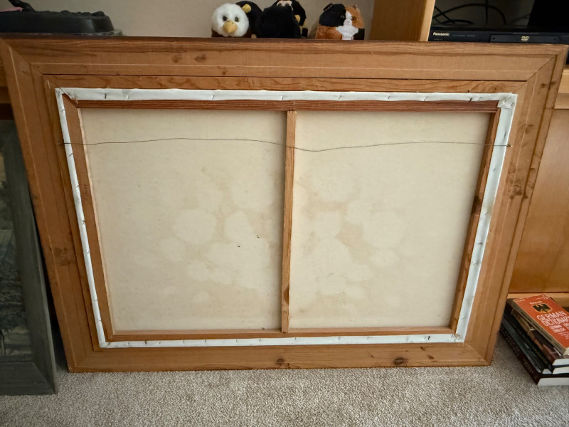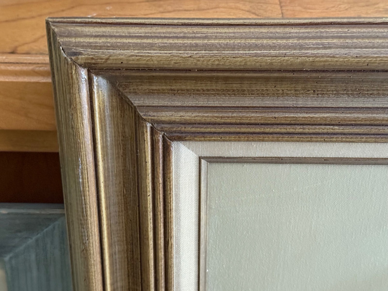 Frame: Traditional wood frame with gold and bronze tones, consistent with mid-20th-century decorative styles.