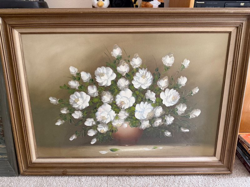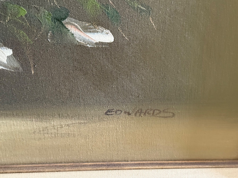 Lot # 177 - Original Oil Painting of White Blossoms in Vase, Signed Edwards