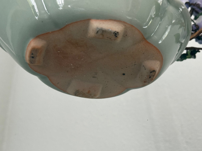 Lot # 181 - Vintage Glass Bonsai Tree with Lavender Blossoms in Celadon Pot