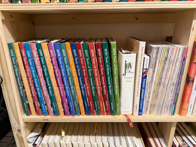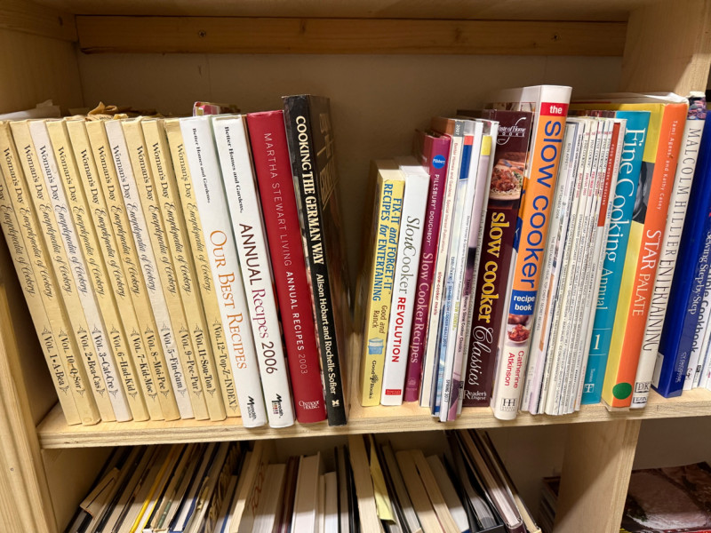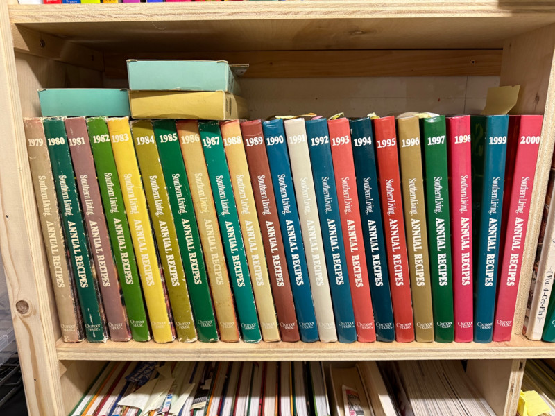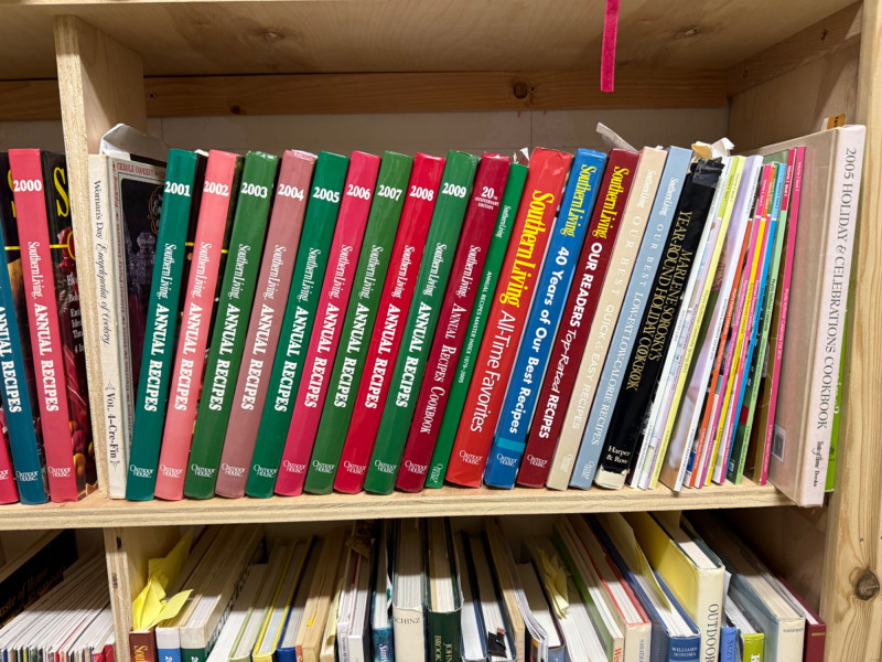 A large and varied cookbook library spanning decades of culinary publishing. This collection features everything from collectible recipe series to modern favorites and specialty cooking guides. Includes well-known titles by Martha Stewart, The Pioneer Woman, and many others. A treasure trove for collectors, home cooks, and culinary enthusiasts. Featured Highlights Series & Sets Southern Living Annual Recipes – Multiple years in complete hardcover editions Cooking Light Annual Recipes – Assorted years, hardcover editions Taste of Home Annual Recipes – Multiple volumes spanning different years Great American Recipe Card Collection – Box set style cookbooks Notable Authors & Titles Martha Stewart Living cookbooks The Pioneer Woman by Ree Drummond Betty Crocker & Better Homes and Gardens classics Practical Problem Solver (hardcover reference) The Complete Salad Book, The Garden Book, and other lifestyle/food references Specialty & Regional Cookbooks International cuisine titles (Italian, French, Mexican, Asian) Baking and dessert-focused cookbooks Slow cooker & microwave specialty guides Vintage and collectible recipe books from the 1980s–2000s Note: Bring boxes. These will not be packed up.