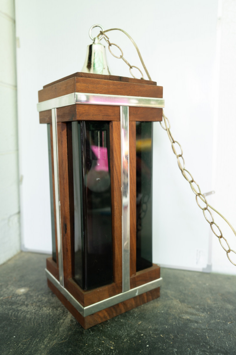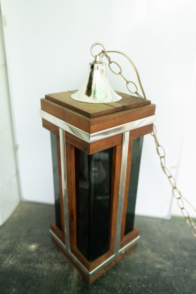 Lot # 31 - Mid-Century Modern Hanging Lantern – Wood, Chrome & Glass Panel Light