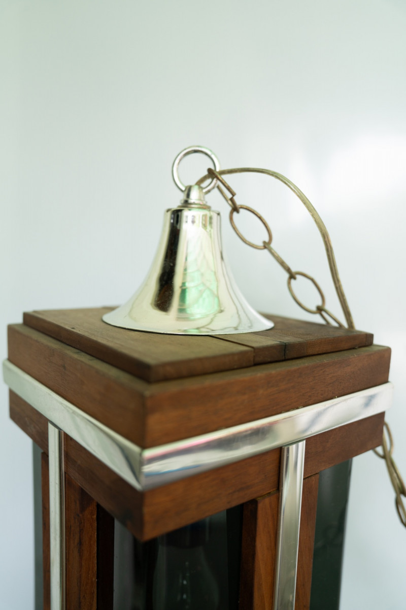 Pendant lanterns like this were popular in the 1960s–70s, reflecting the era’s fascination with combining natural and industrial materials. The mix of chrome and wood became a hallmark of mid-century and retro-modern design, bridging rustic charm with futuristic styling. Such pieces are versatile, fitting equally well in mid-century modern interiors, boho spaces, or eclectic design schemes.