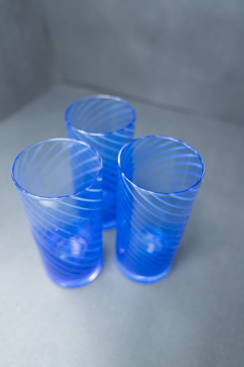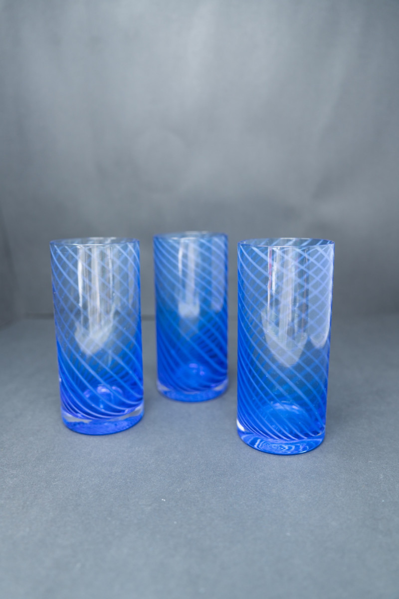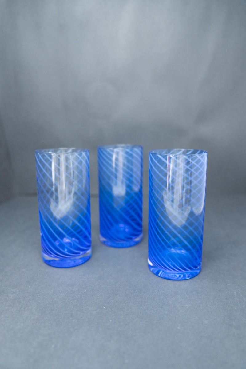 Lot # 43 - Set of 3 Italian Cobalt Blue Spiral Tumblers – Vintage 1980s Glassware