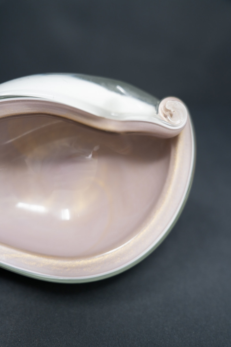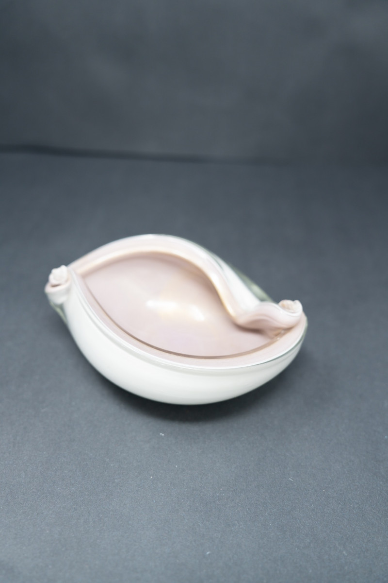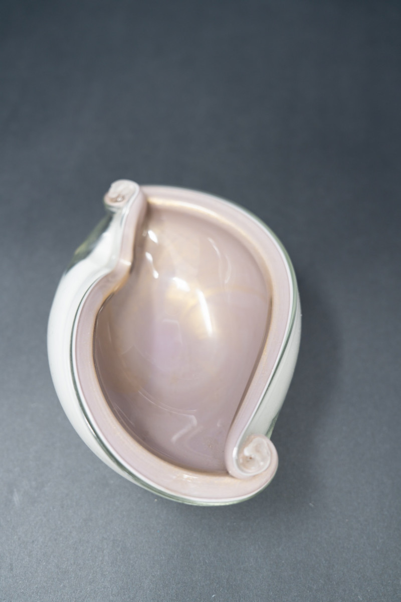 Lot # 44 - Alfredo Barbini for Murano – Lilac & White Glass Shell Bowl
