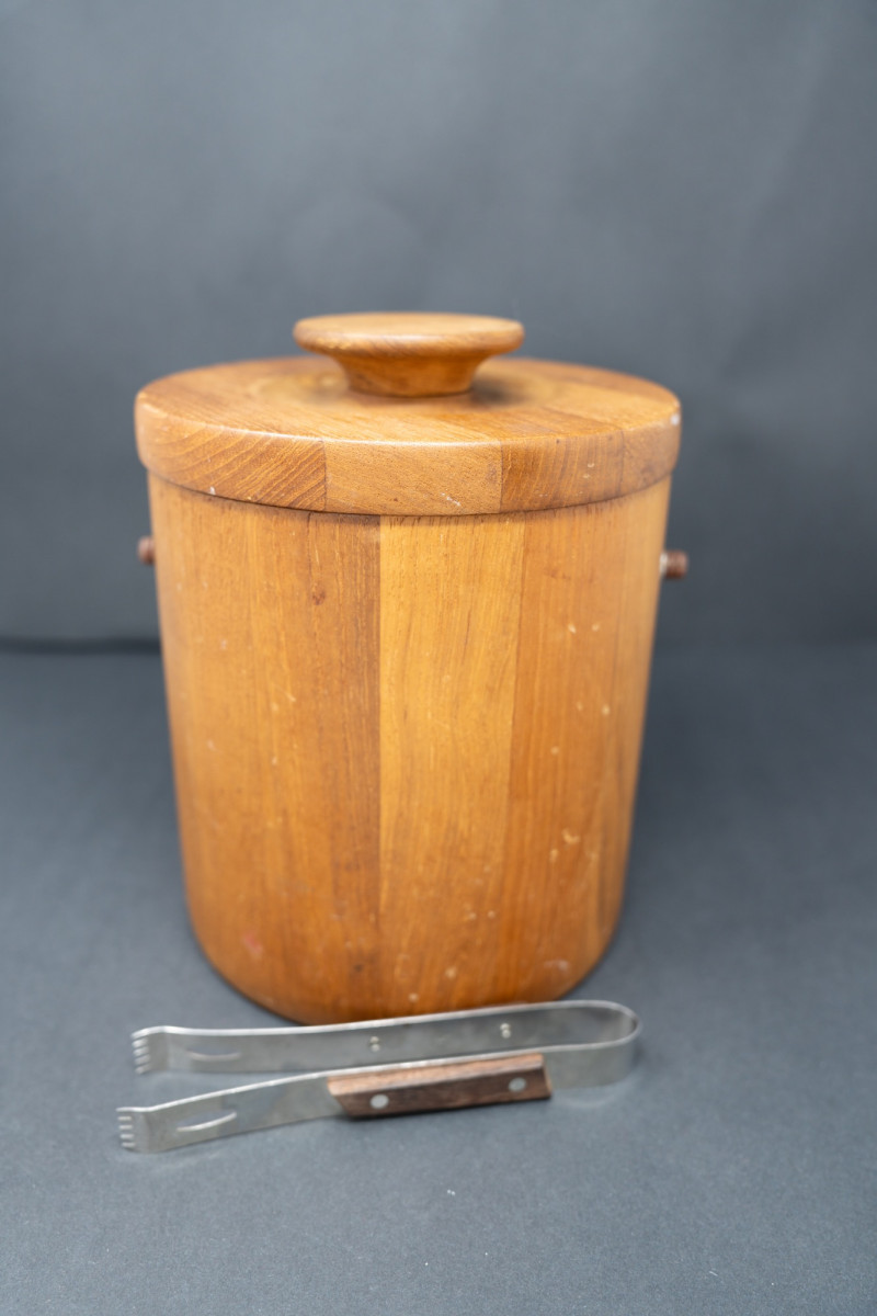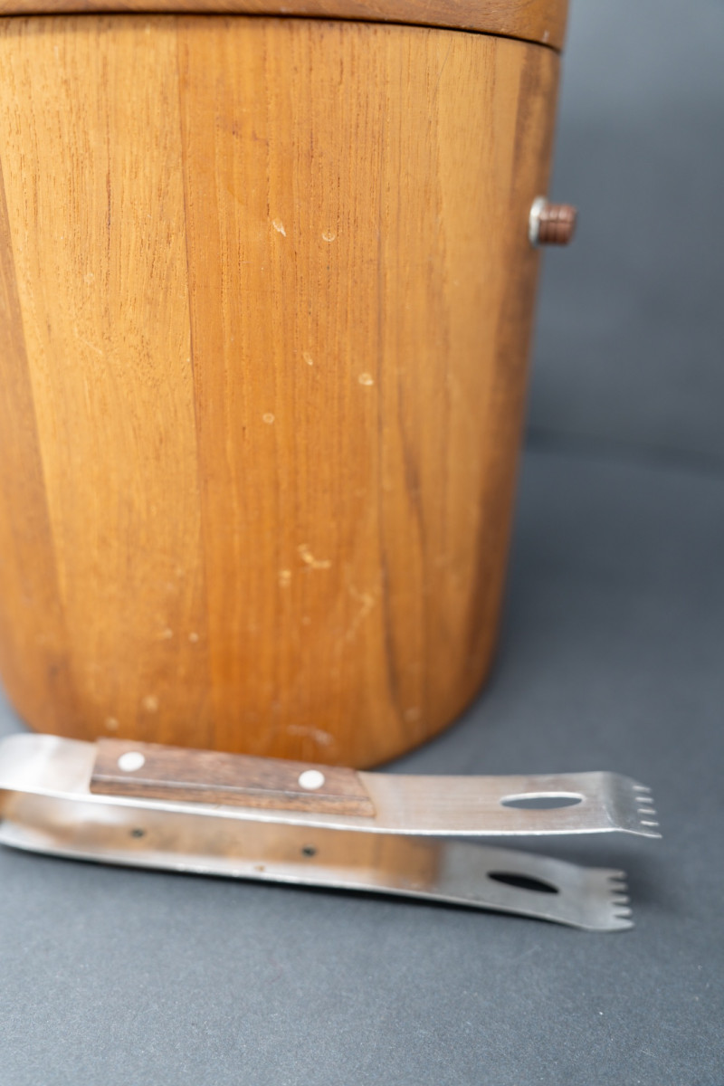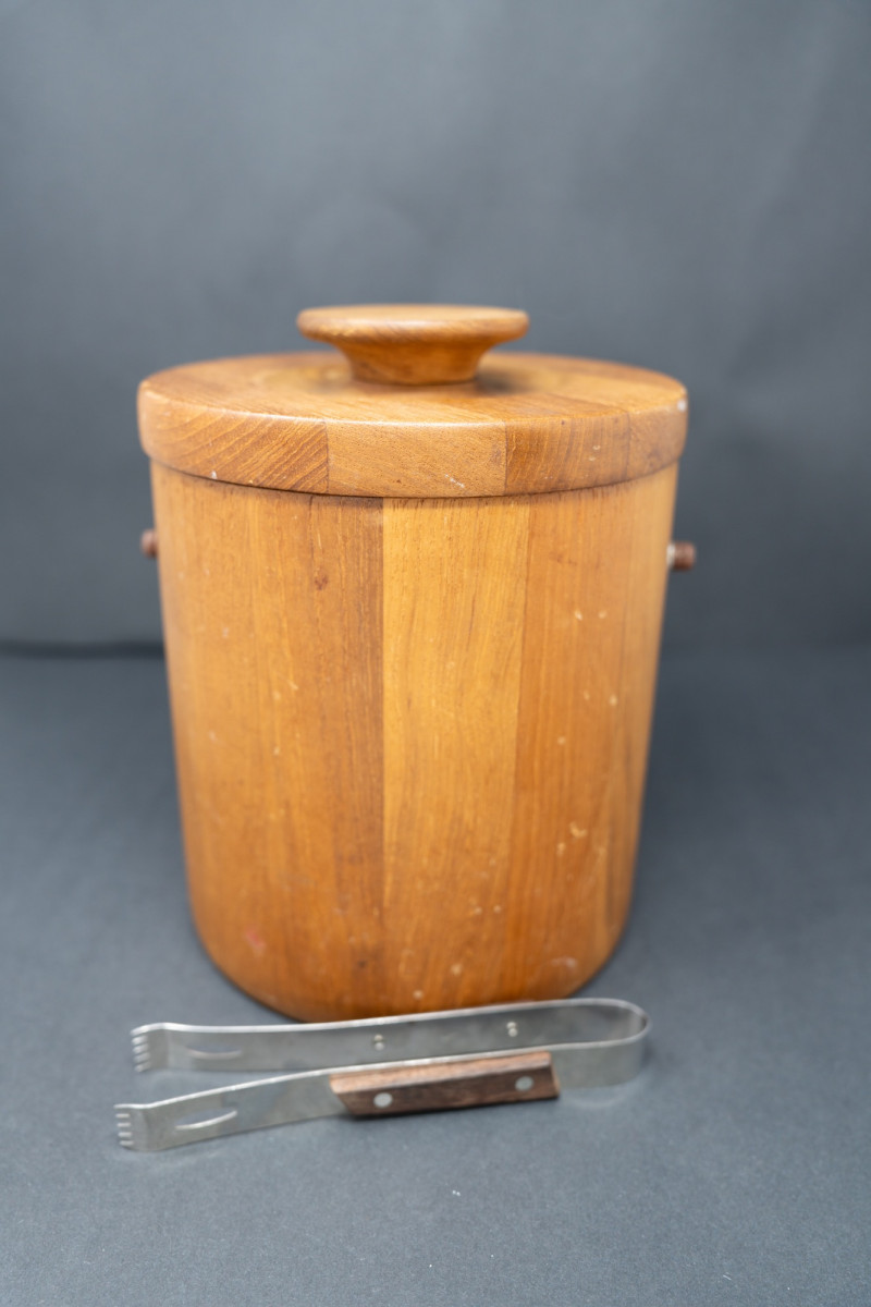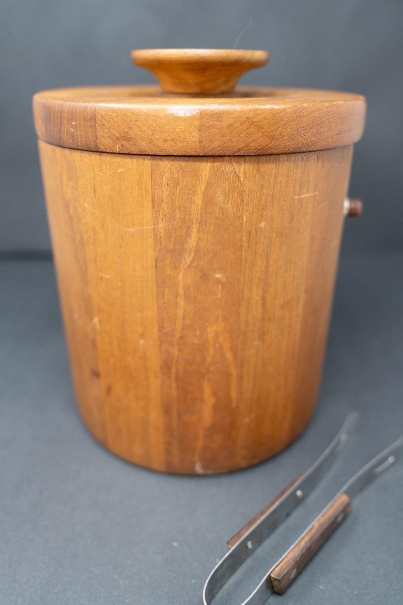 Lot # 45 - Mid-Century Danish Modern Teak Ice Bucket with Lid & Tongs