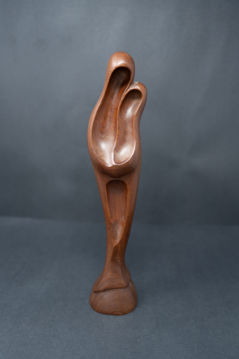 Abstract wooden carvings of the mid-20th century were often inspired by modernist sculpture while still drawing from regional folk traditions. Paraguayan artisans in particular produced elegant hardwood carvings in the 1960s–70s, blending cultural symbolism with the simplicity of modern design. The mother-and-child motif is a timeless subject in sculpture, celebrated across cultures for its universal resonance.