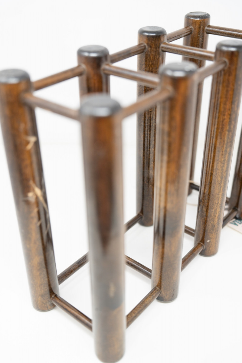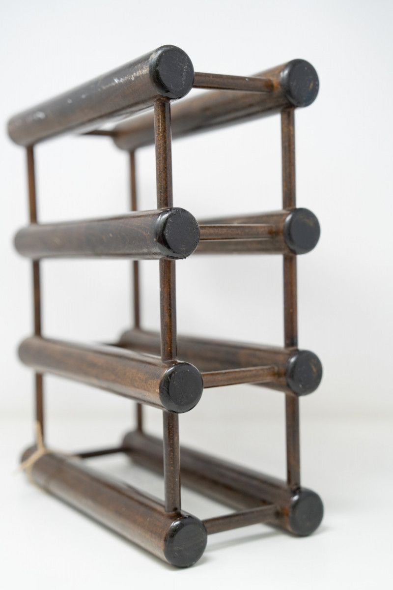 Practical yet decorative, these wooden wine racks embody the timeless mid-century modern ethos of form meeting function. Collectible and versatile, perfect for adding a touch of vintage style to kitchen, bar, or dining spaces.
