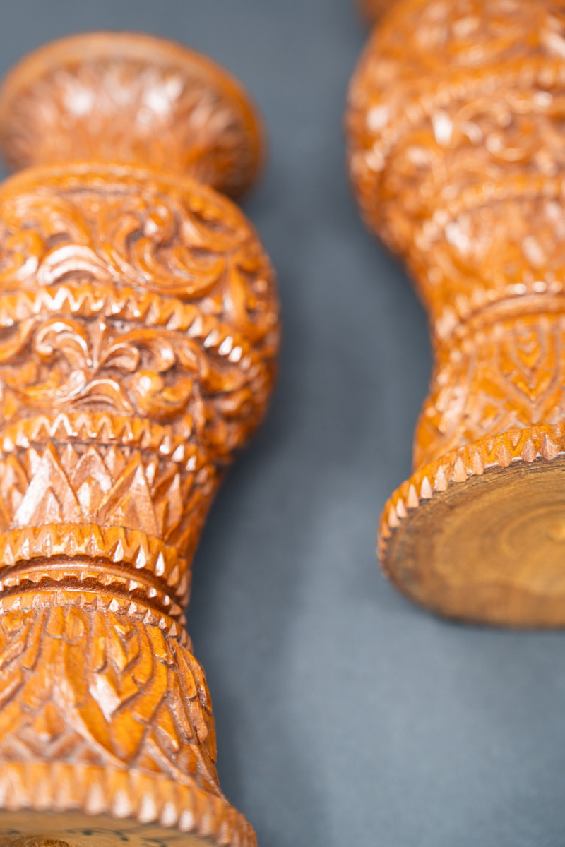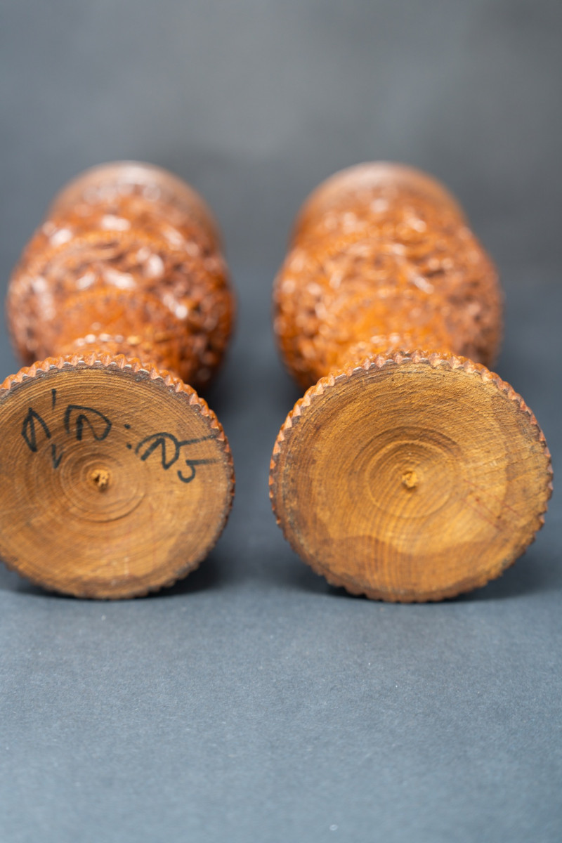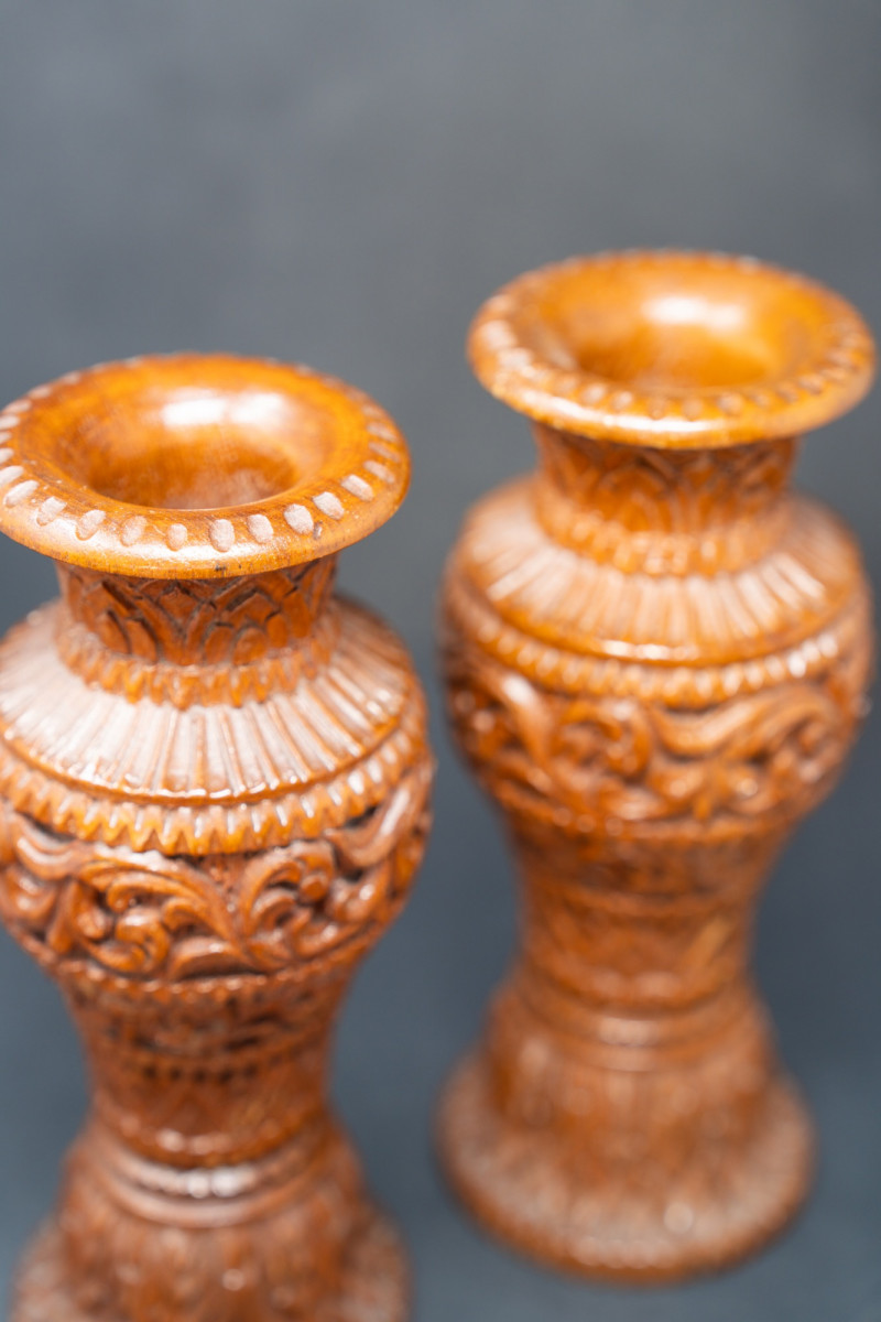 Lot # 84 - Pair of Vintage Hand-Carved Wooden Candle Holders