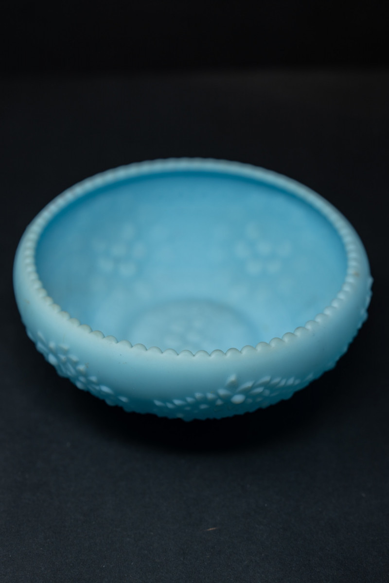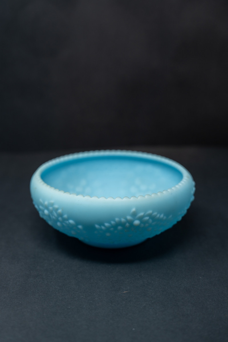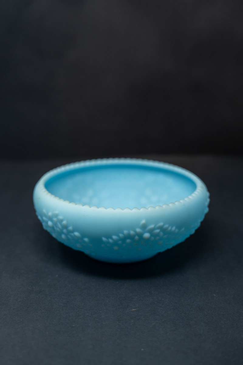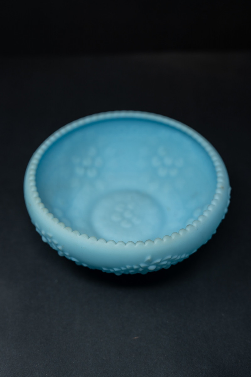 Lot # 106 - Vintage Fenton Satin Blue Glass Bowl – Grape & Cable Pattern