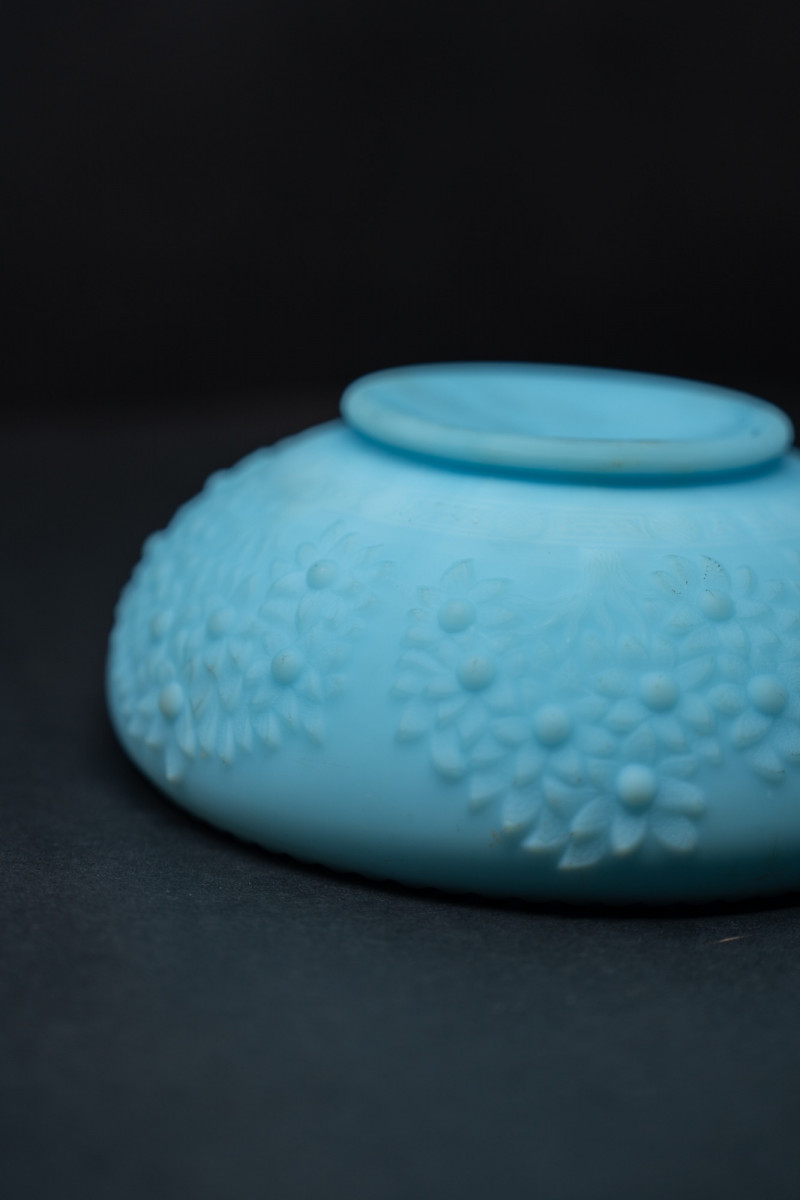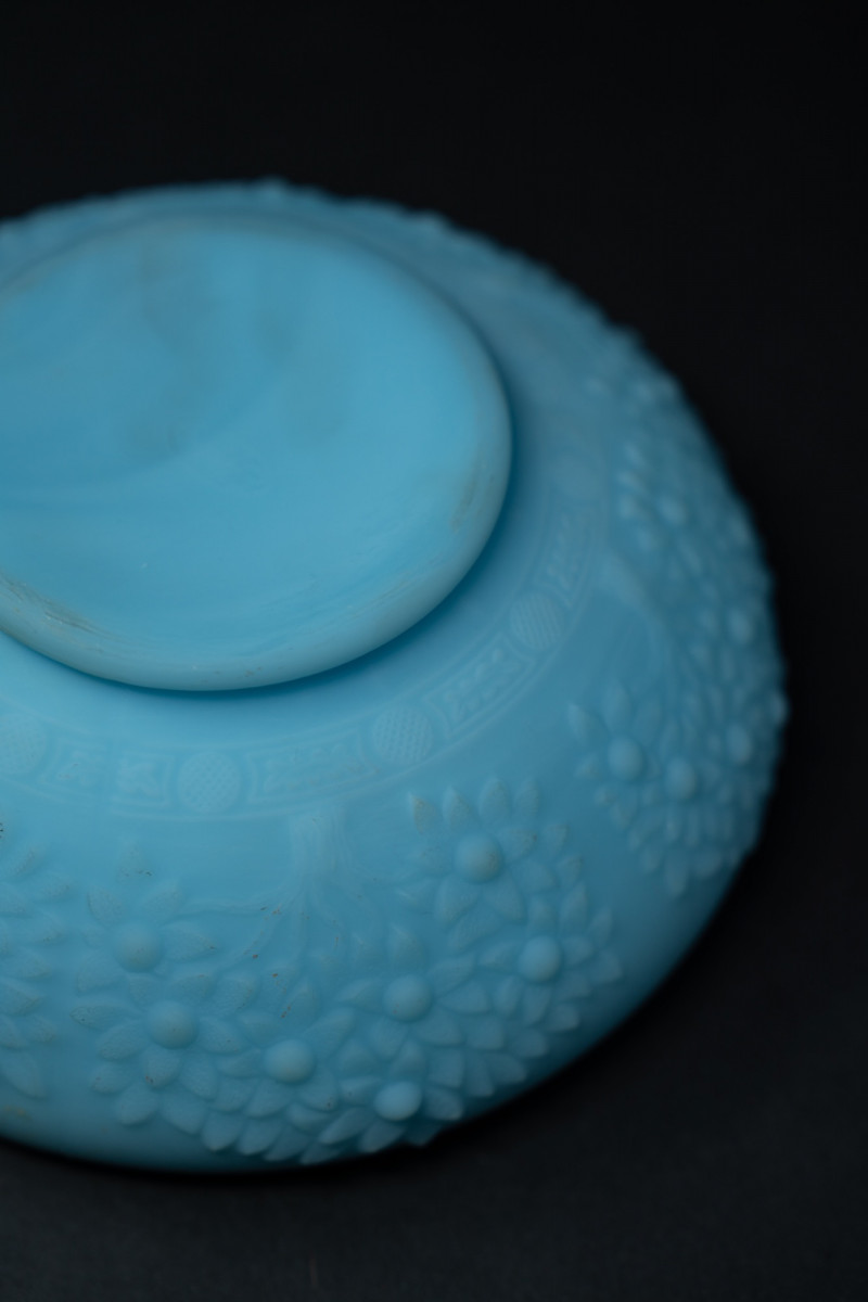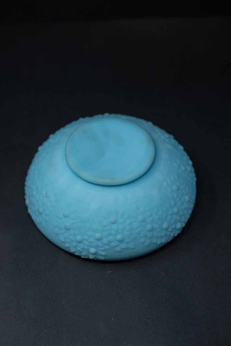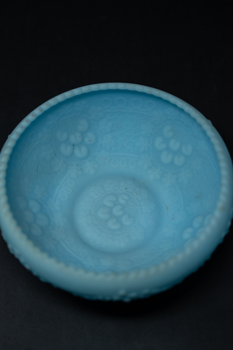 Lot # 106 - Vintage Fenton Satin Blue Glass Bowl – Grape & Cable Pattern