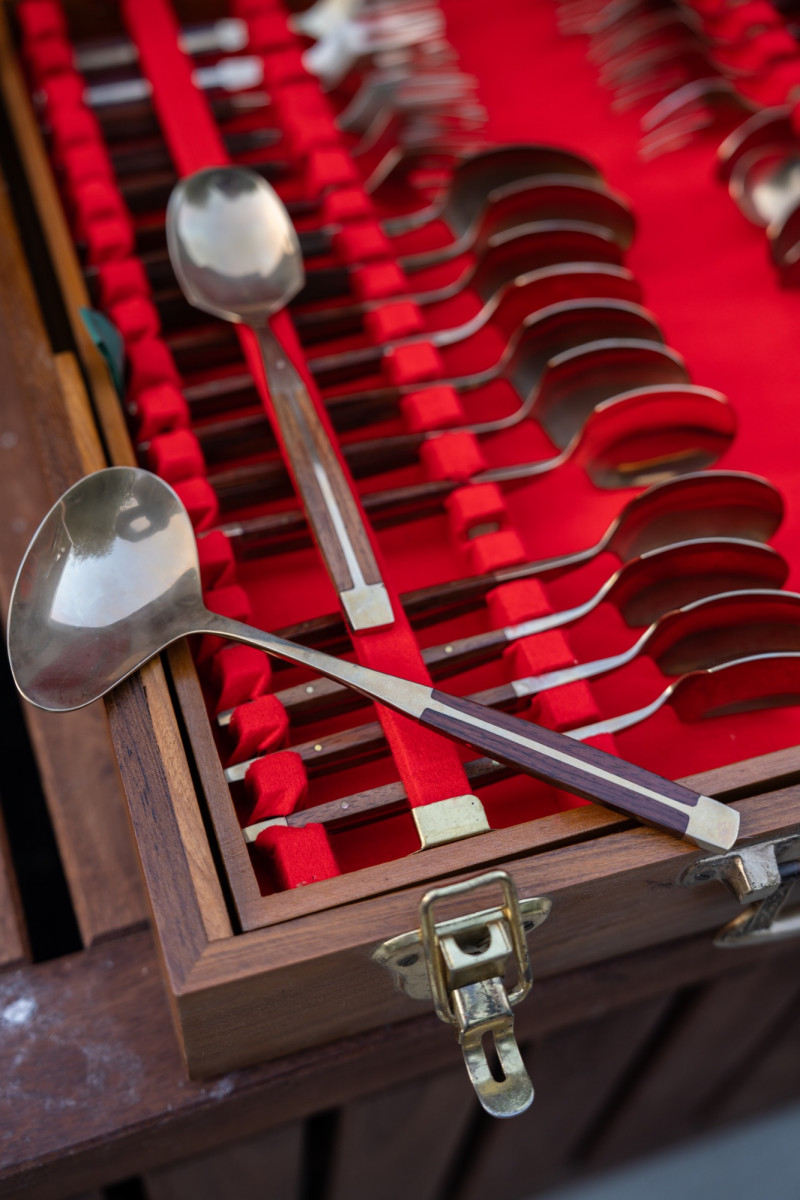 Lot # 107 - 1950s Modernist Rosewood & Brass Inlay Flatware Set
