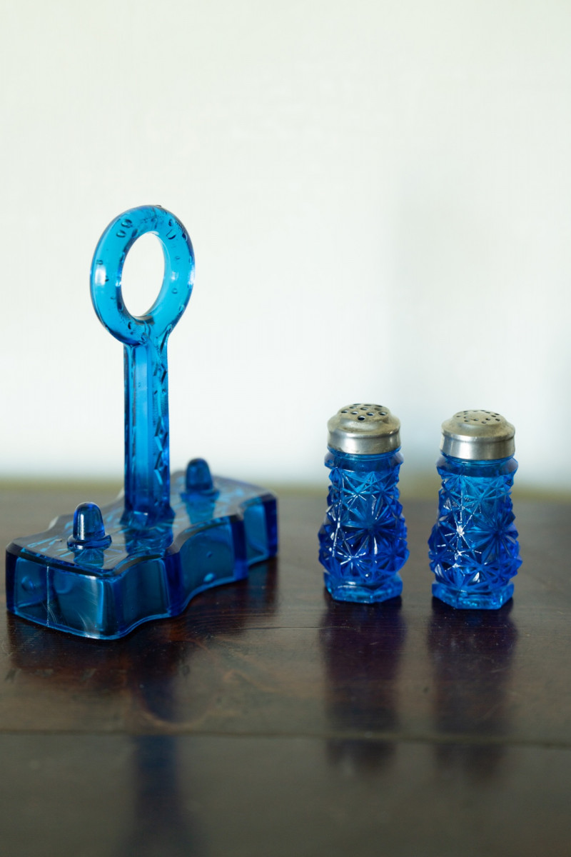 Lot # 112 - Antique Dithridge EAPG Blue Glass Salt & Pepper Shakers-Circa 1896
