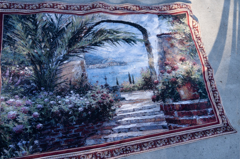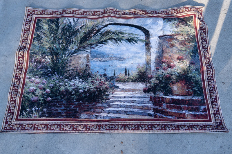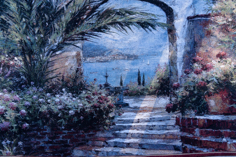 Lot # 117 - Mediterranean Garden Woven Tapestry Wall Hanging – Coastal Archway