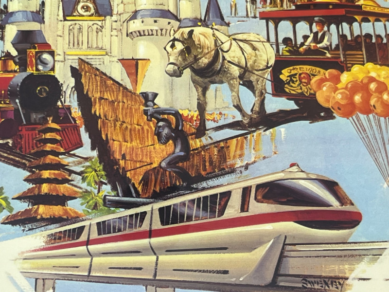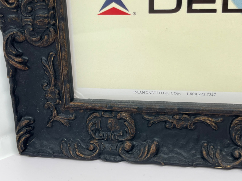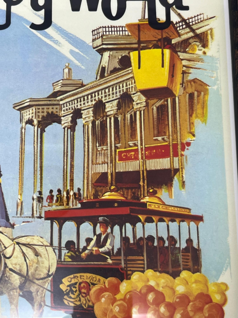 A rare and visually captivating framed promotional poster celebrating the early partnership between Delta Airlines and Walt Disney World. Likely dating to the 1970s or early 1980s, this piece blends the charm of vintage airline advertising with the whimsy of Disney’s Magic Kingdom. The artwork features stylized illustrations of park landmarks and attractions, rendered in bold, saturated colors with a playful layout that evokes the excitement of travel and theme park adventure. Medium: Printed poster, professionally framed Theme: Delta Airlines x Walt Disney World promotional art Style: Mid-century travel illustration with Disneyana flair Function: Wall art, memorabilia, or centerpiece for vintage travel collectionsItem Overview