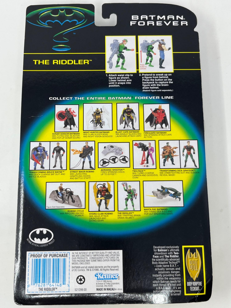 Equipped with “Quick Climb Cat-Cable” and “Capture Net.” Sleek sculpt and dynamic pose nod to her feline finesse and rogue charm. The Riddler (Batman Forever Series)