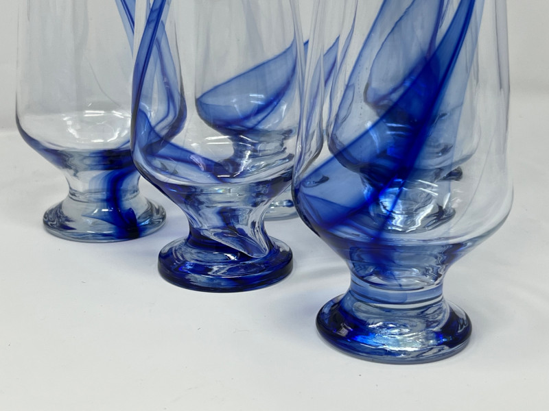 Lot # 118 - Libbey Blue Ribbon Swirl Glasses- Set of 6