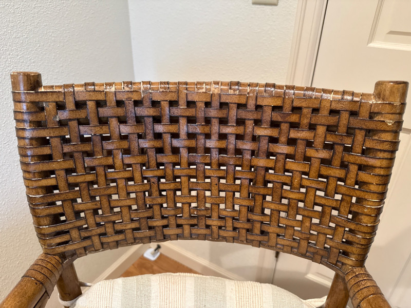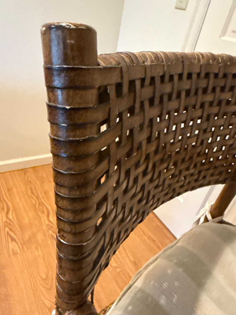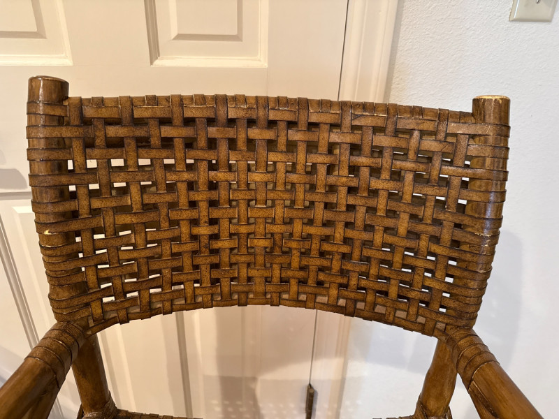 Lot # 5 - Pair of Vintage Rattan & Rawhide Woven Bar Stools
