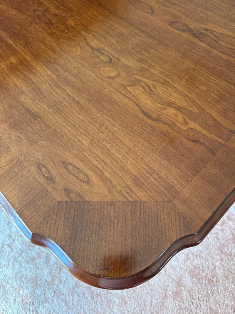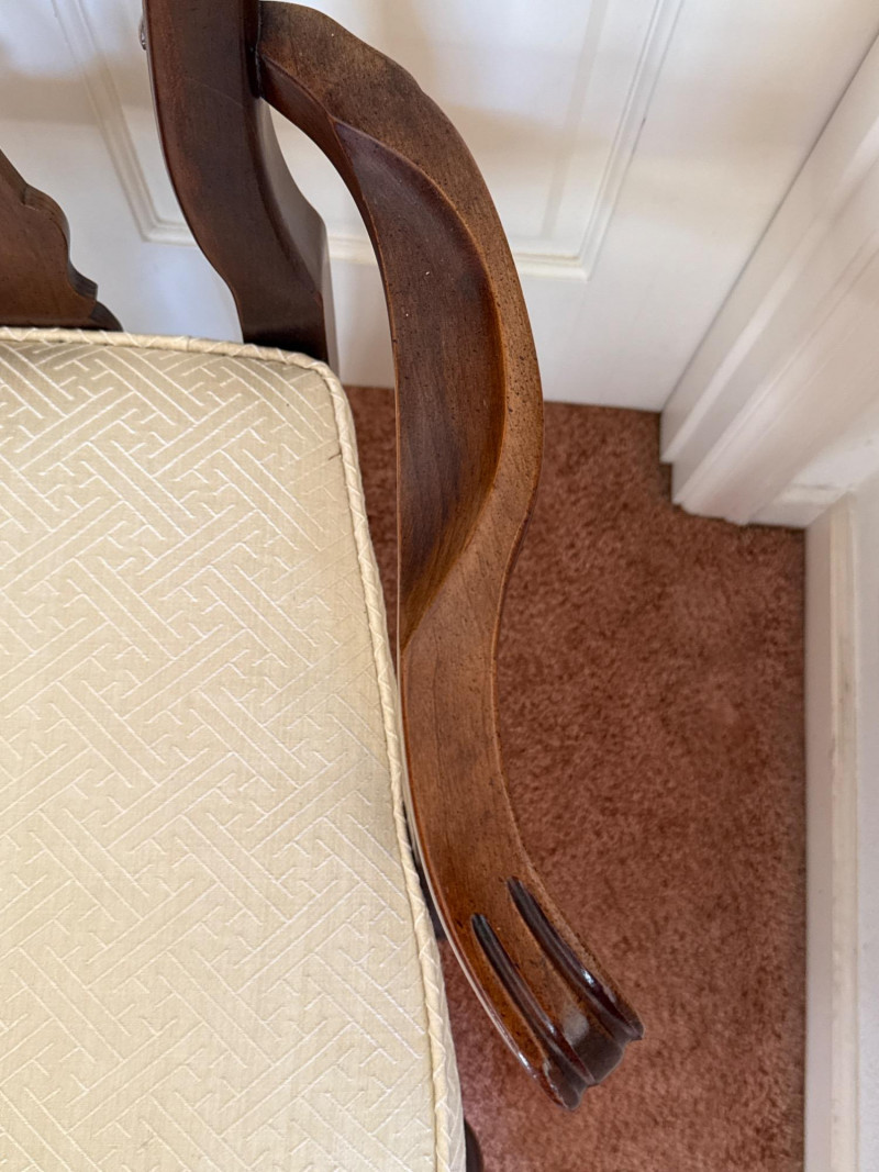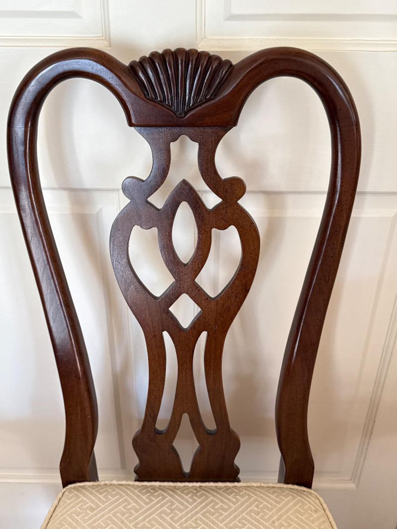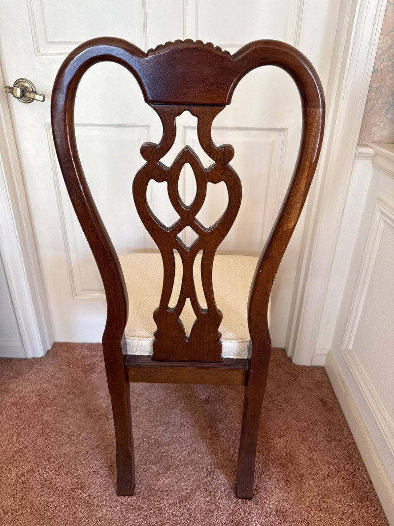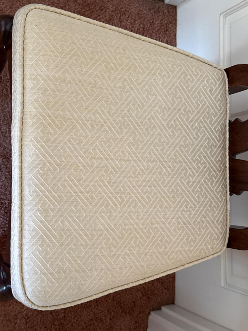 Thomasville Chippendale Double Pedestal Dining Table with 8 Chairs This Thomasville Chippendale Revival dining set is a beautiful blend of craftsmanship and timeless elegance. Here's a breakdown of its key features and value points: Chippendale Revival: Inspired by 18th-century English design, known for its ornate details and refined silhouette. Pierced Splat Backs: A hallmark of Chippendale chairs, adding visual interest and historical charm. Cream Upholstered Seats: Neutral and classic, offering comfort and versatility in décor. Table Size: measures 111" long by 44" wide with two leaves—perfect for both intimate dinners and large gatherings. Two leaves. Double Pedestal Base: Offers stability and legroom, while enhancing the formal aesthetic. Protective Pads: Custom-fitted pads included to preserve the tabletop, especially when fully extended. 8 Chairs Total: 6 Side Chairs 2 Armchairs Thomasville Furniture, North Carolina 7261 Series: Known for quality construction and enduring style. About the Maker: Thomasville Furniture Industries, founded in 1904 in Thomasville, North Carolina, became one of America's most respected furniture manufacturers. Known for its craftsmanship, elegant designs, and use of quality hardwoods, Thomasville earned a reputation for producing timeless pieces that blended tradition with durability. **Must bring equipment and support to load. Design & Style
