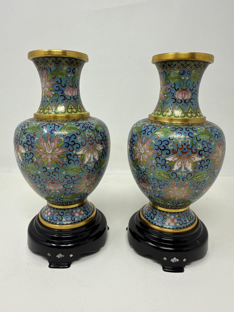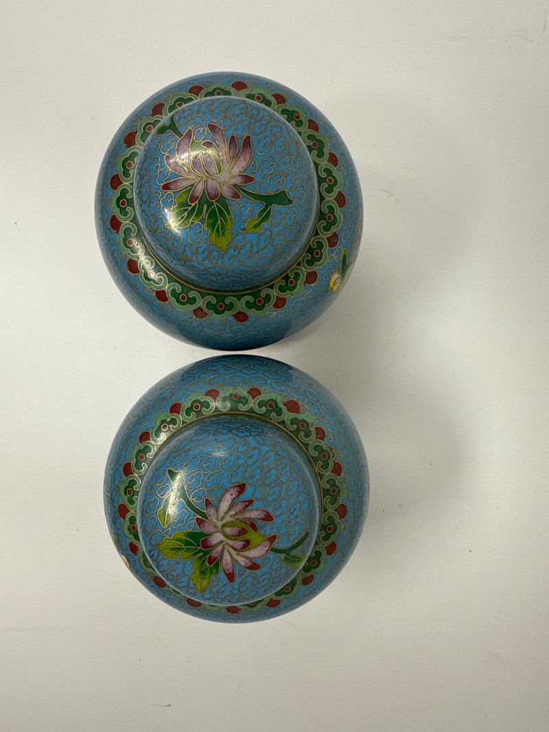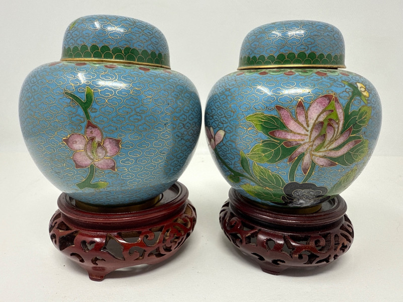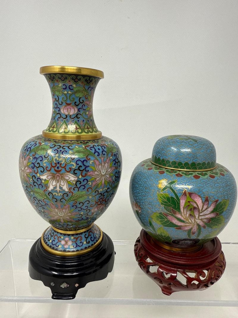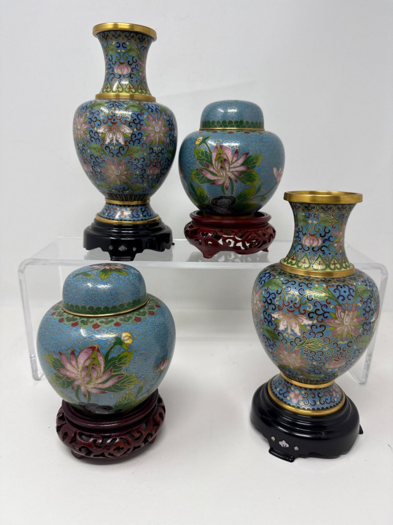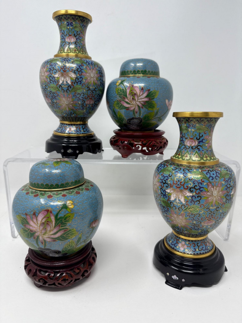 Lot # 155 - Four Vintage Cloisonné Vessels – Ginger Jars & Vases with Stands