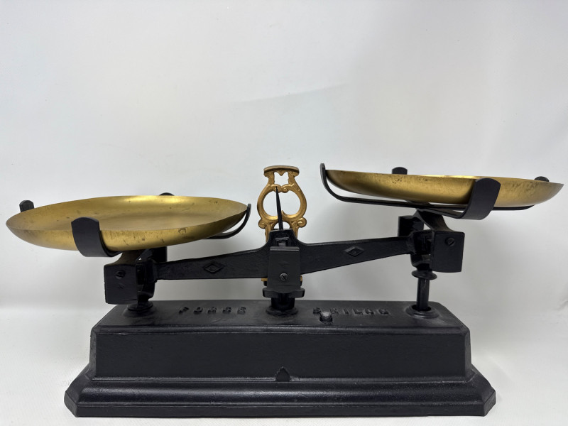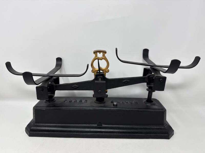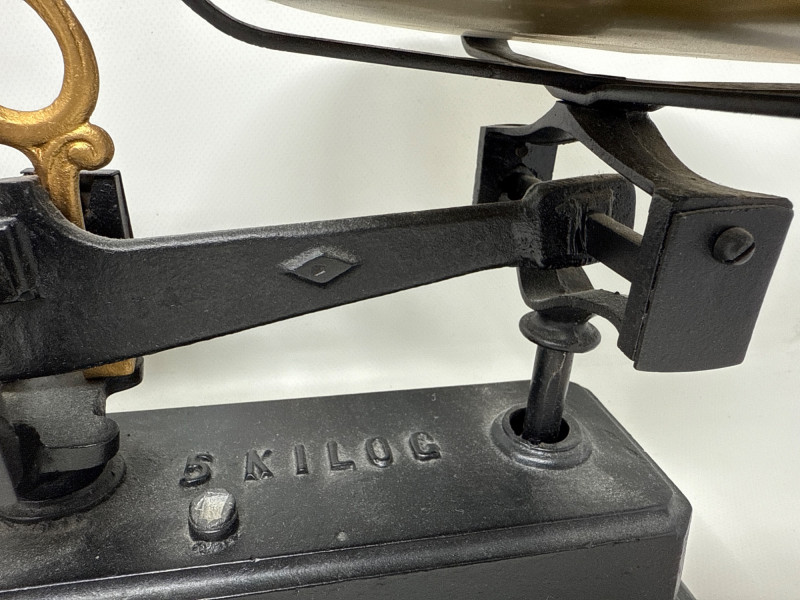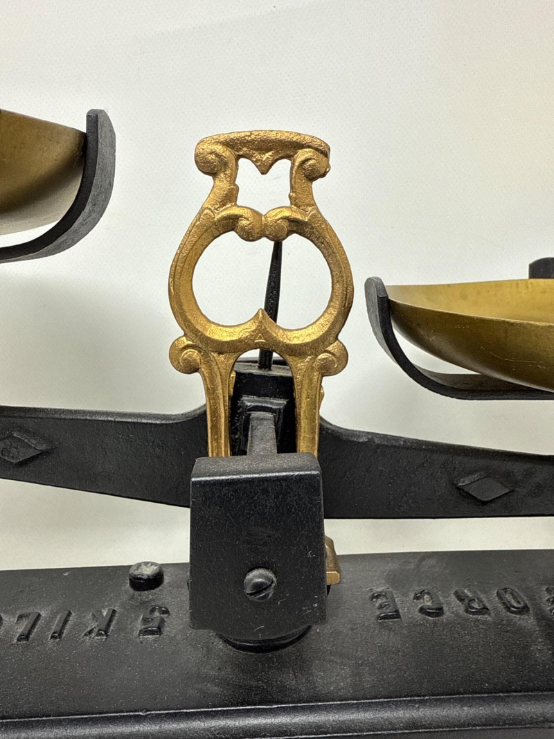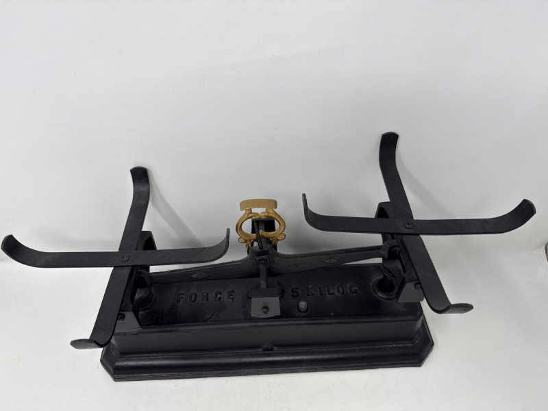 Lot # 35 - Vintage French “Force” Cast Iron & Brass Balance Scale – 5 KG Capacity