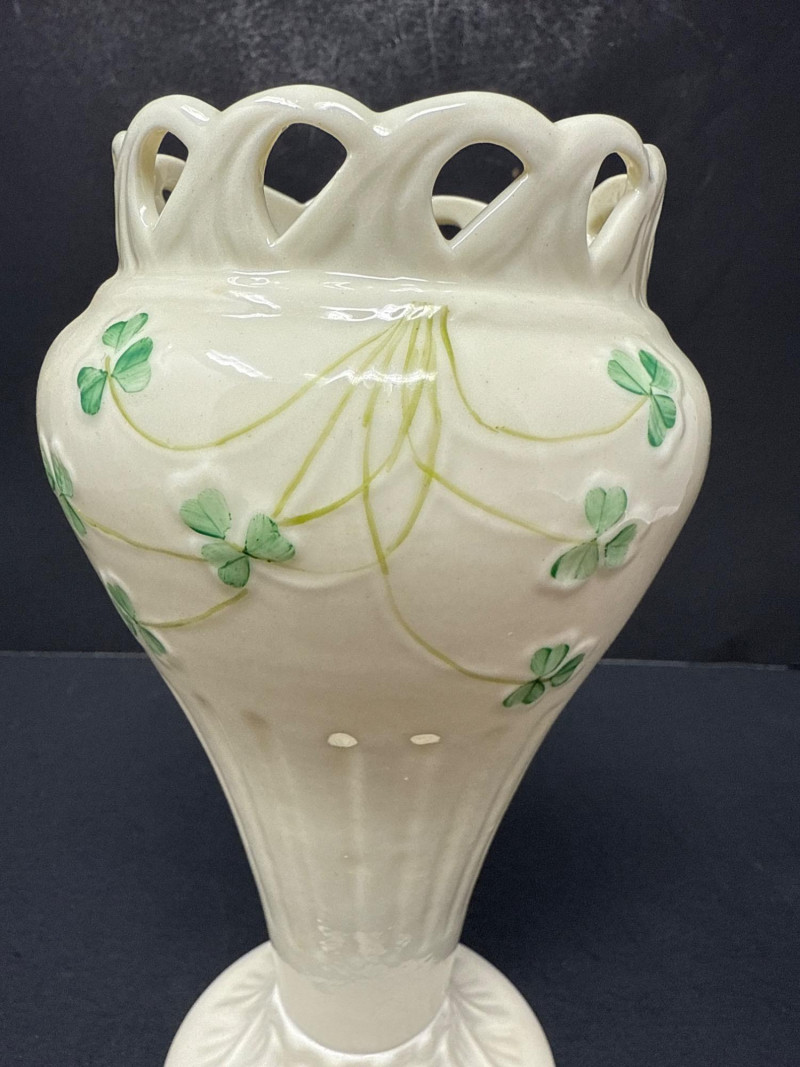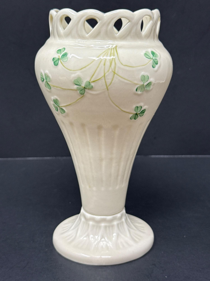 Lot # 157 - Belleek Shamrock Pierced Vase – 7.75" Tall