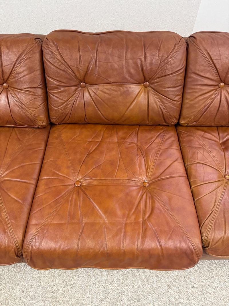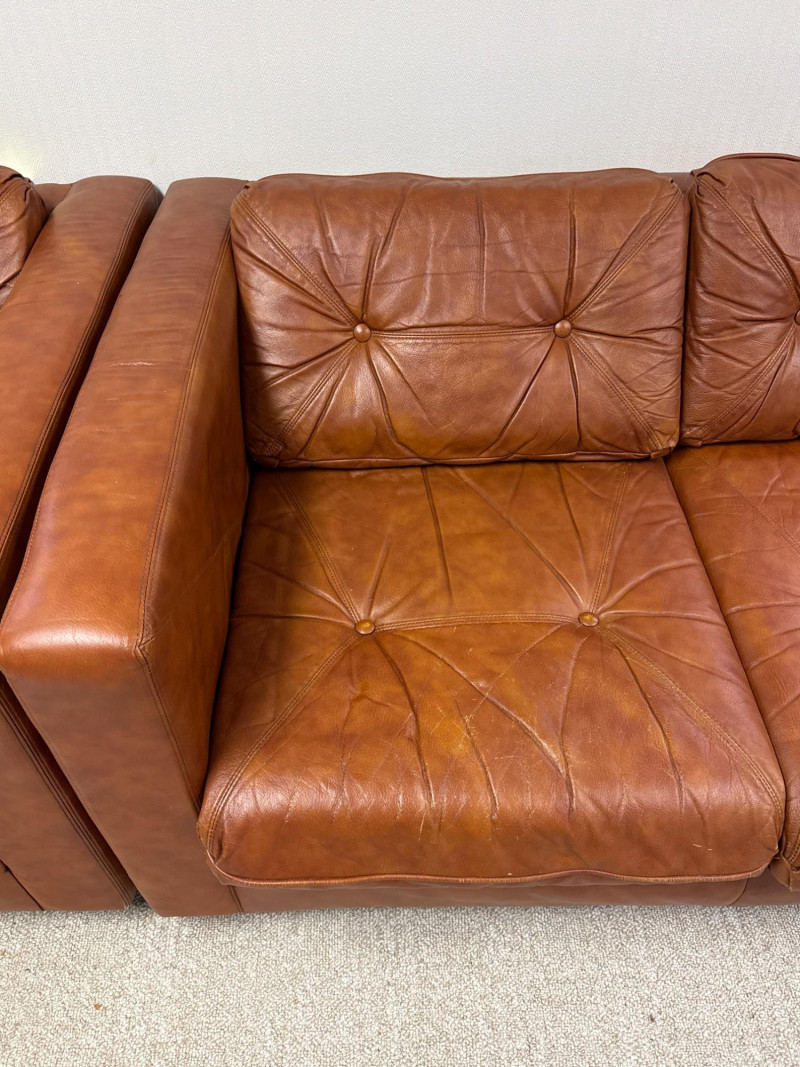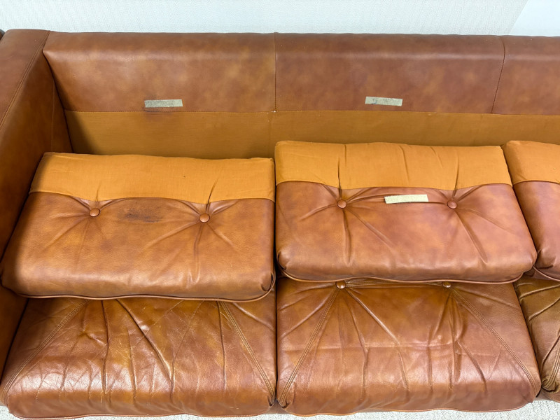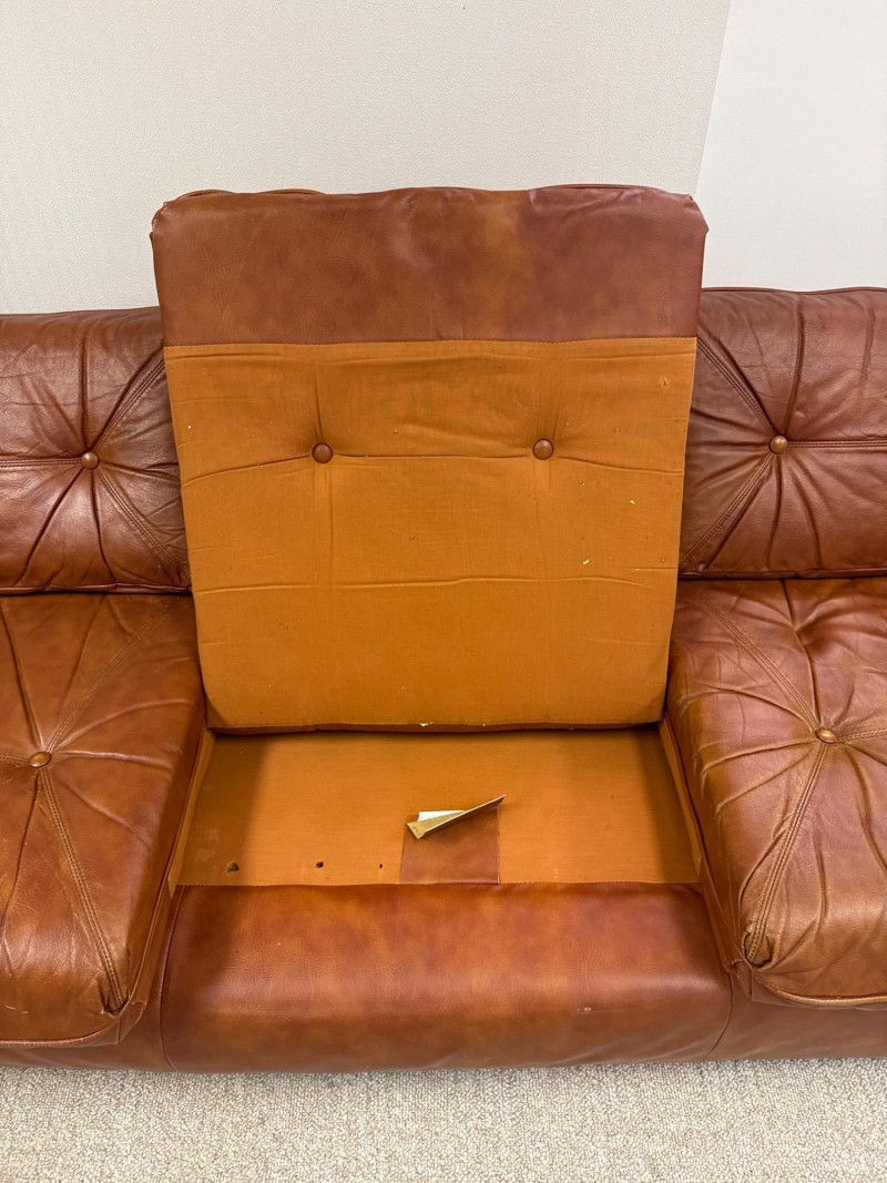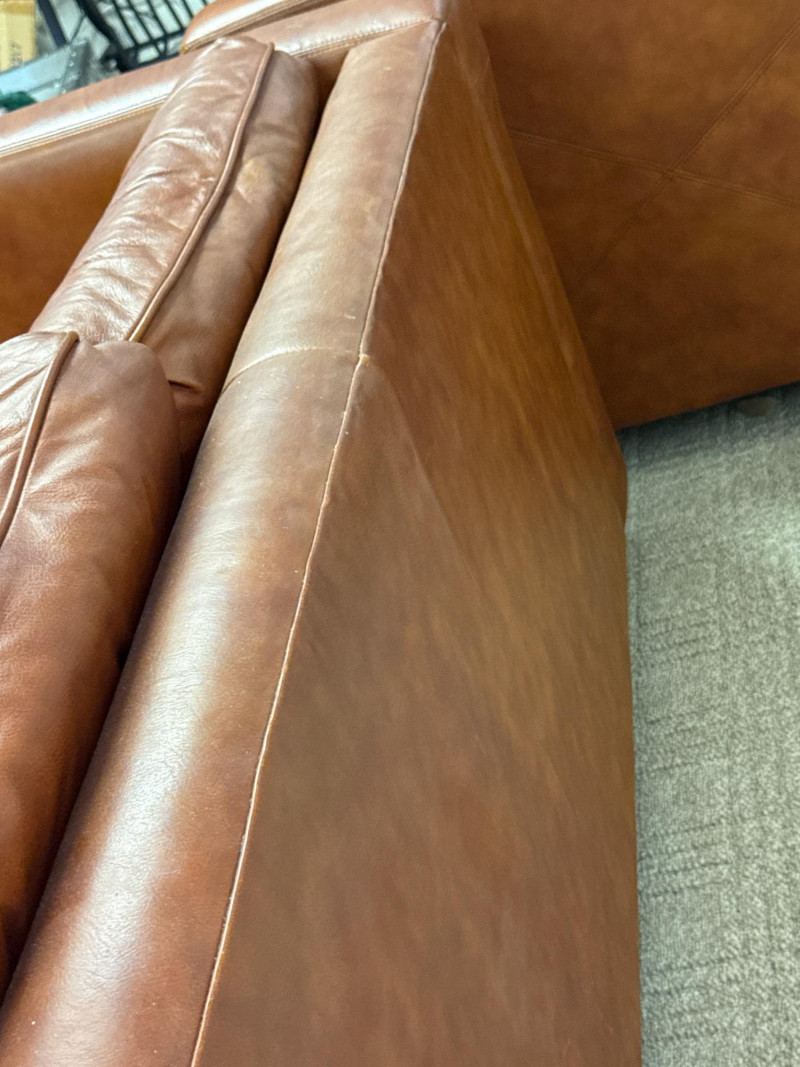 Schaefer Brothers of New Jersey was a respected American furniture manufacturer known for producing high-quality leather seating in the mid-to-late 20th century. Their sofas were recognized for resilient materials, lasting construction, and understated modern lines, making them highly collectible today. Details: Maker: Schaefer Brothers, New Jersey Style: Mid-Century / 1970s Modern Upholstery: Brown leather Cushion Filling: 100% Astrofill polyester fiberfill (labeled) Features: Button-tufted back and seat cushions Straight square armrests Removable cushions with fabric underside Low wood legs *Very Heavy. Must bring help and equipment to load.