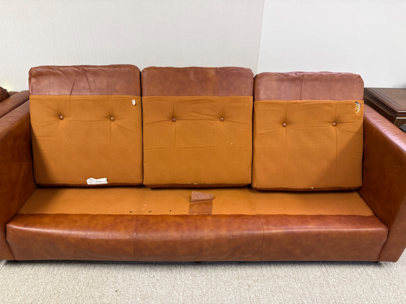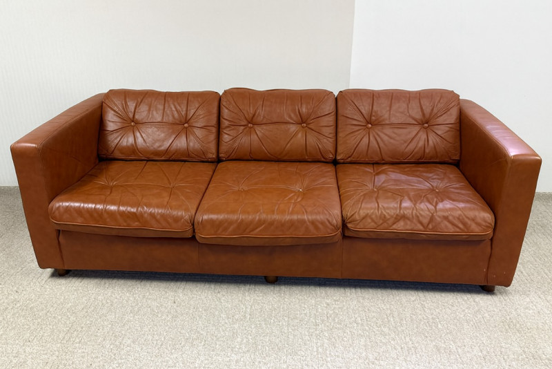 Lot # 130 - Vintage Schaefer Brothers Brown Leather Three-Seat Sofa