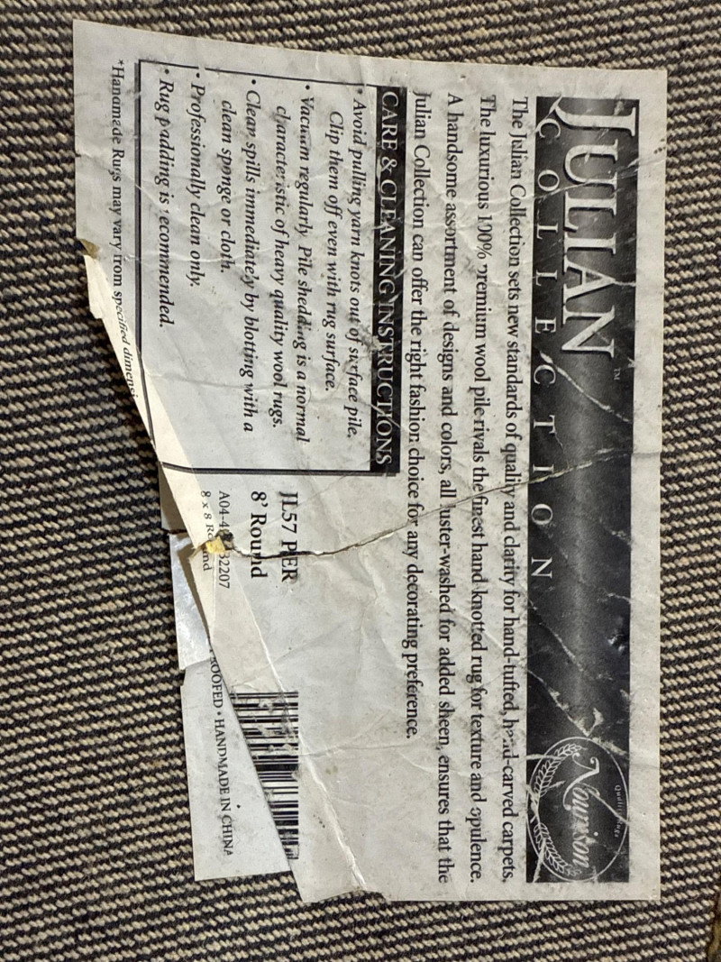 Material: 100% premium wool pile, hand-tufted and hand-carved