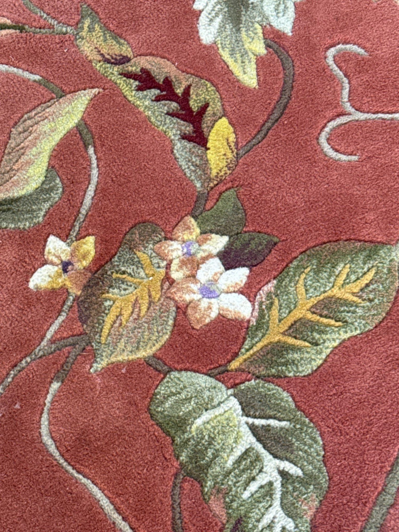 Rich terracotta ground with intricate all-over floral and vine motifs