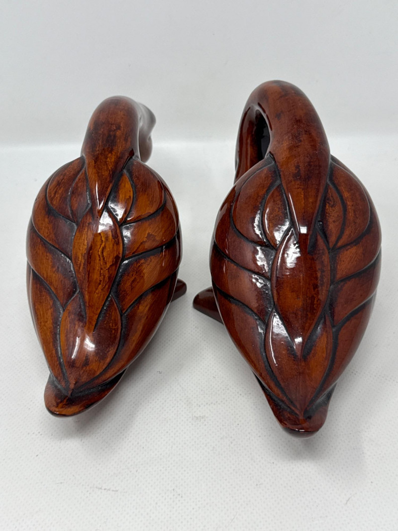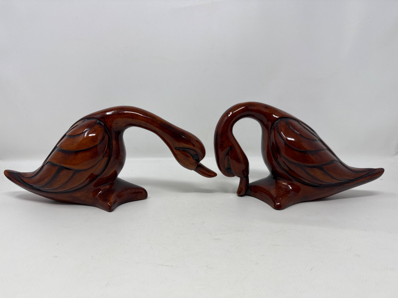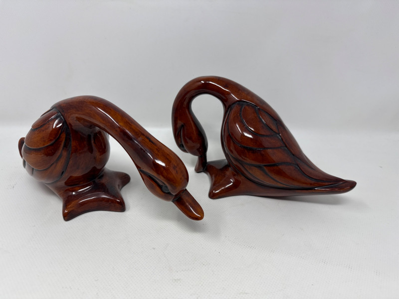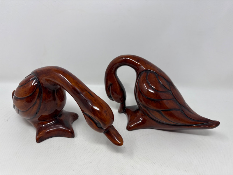 Lot # 97 - Pair of Signed Hand-Carved Ironwood Swan Figures
