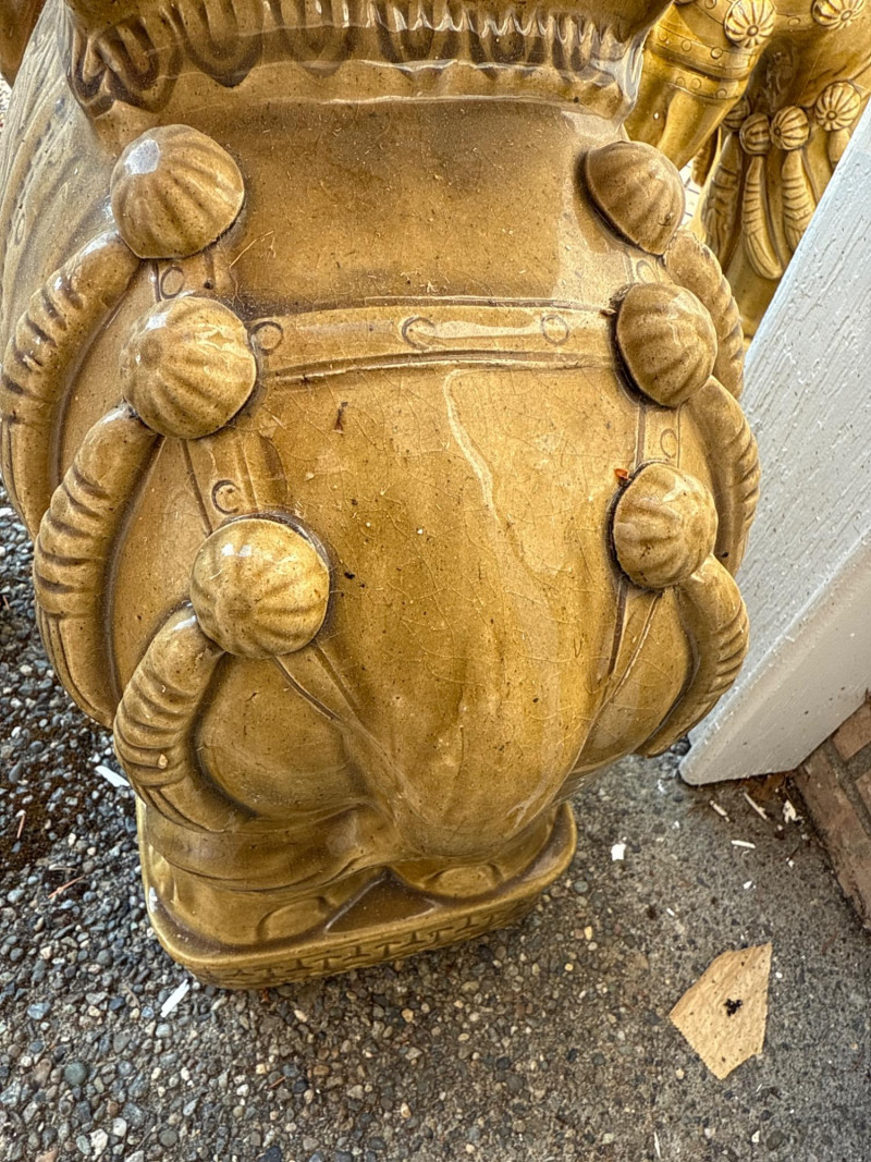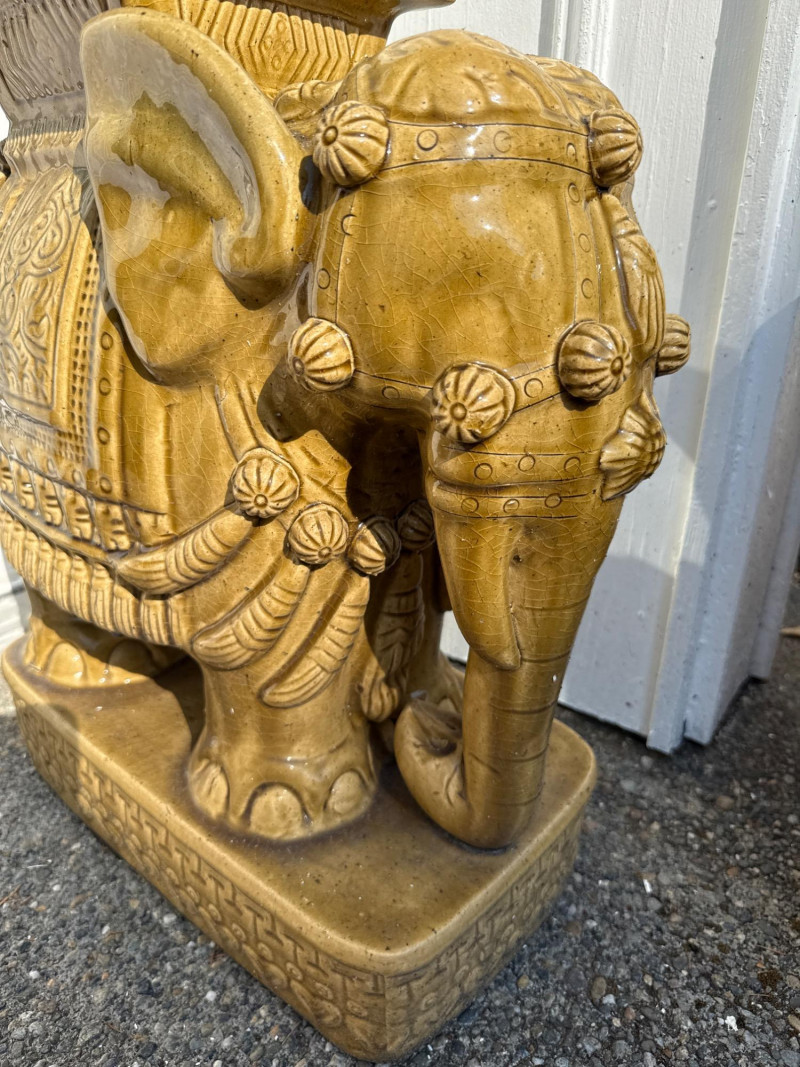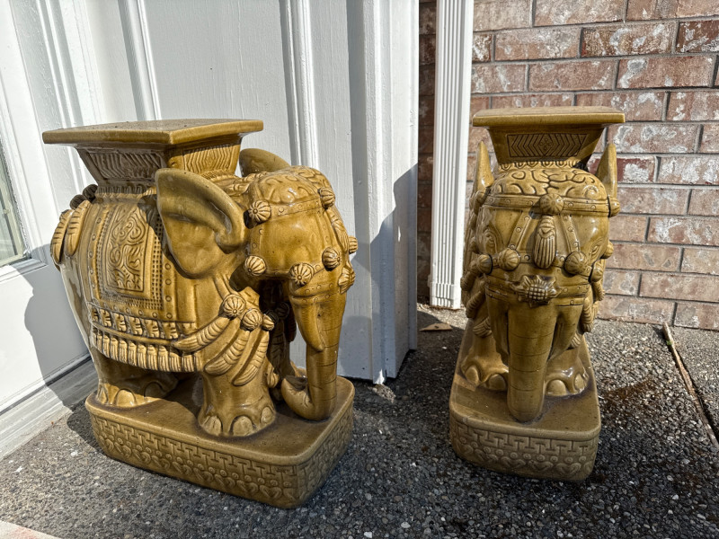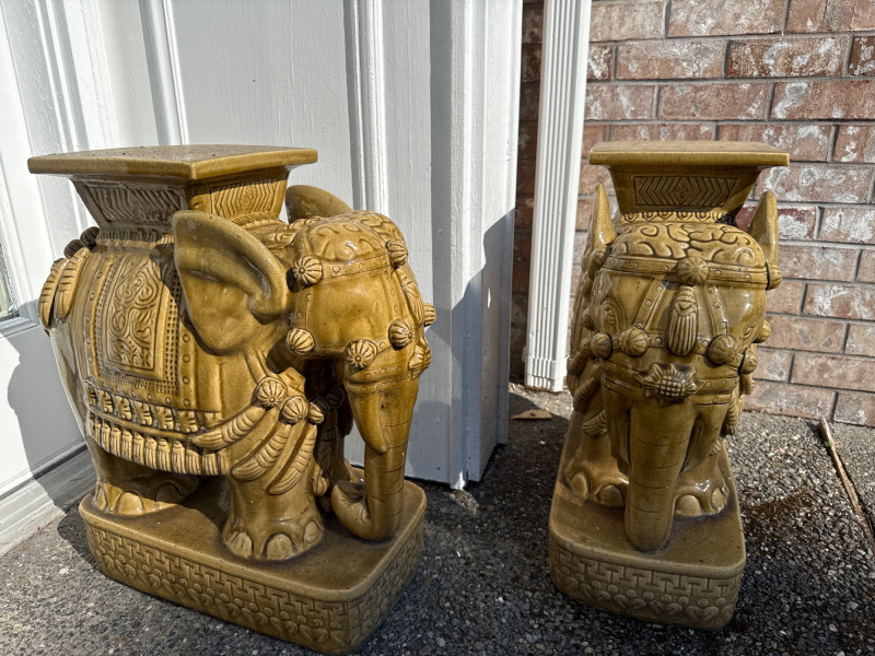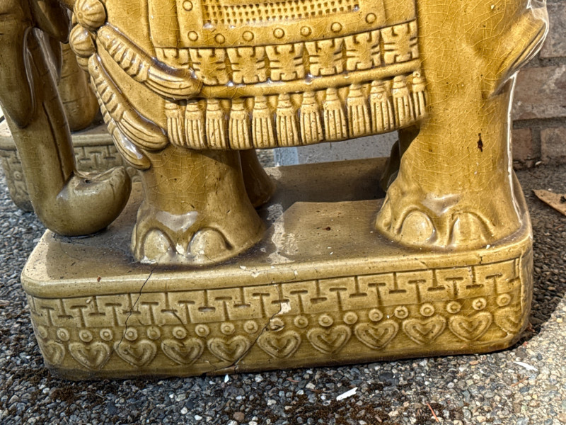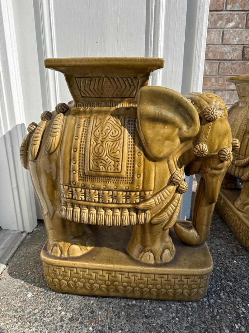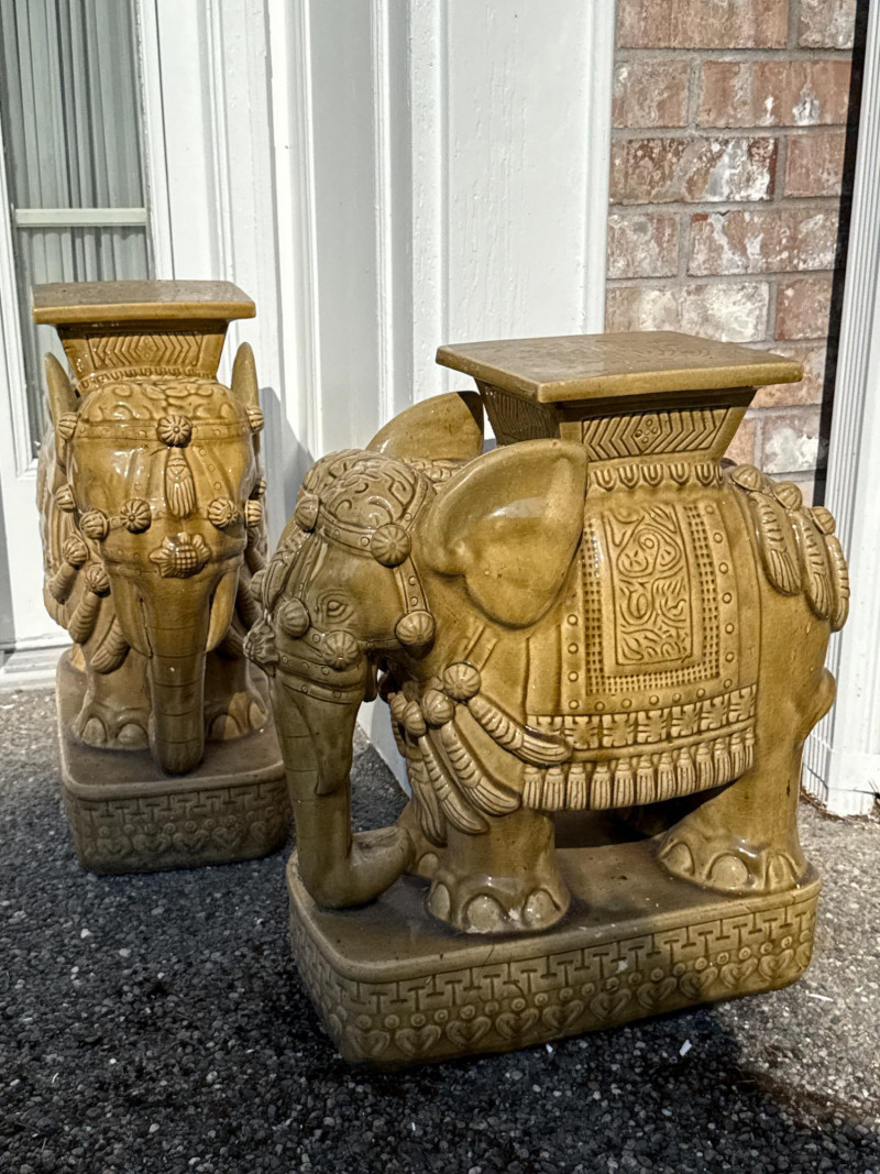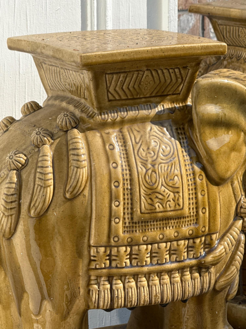 Lot # 143 - Pair of Gold Ceramic Elephant Plant Stands – Ornate Garden Pedestals