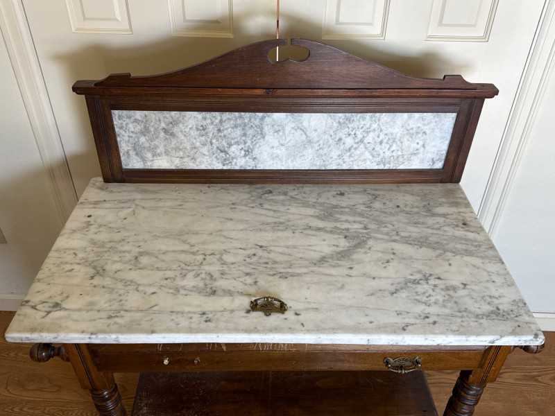 Lot # 105 - Antique Marble and Walnut Washstand – Early 20th Century