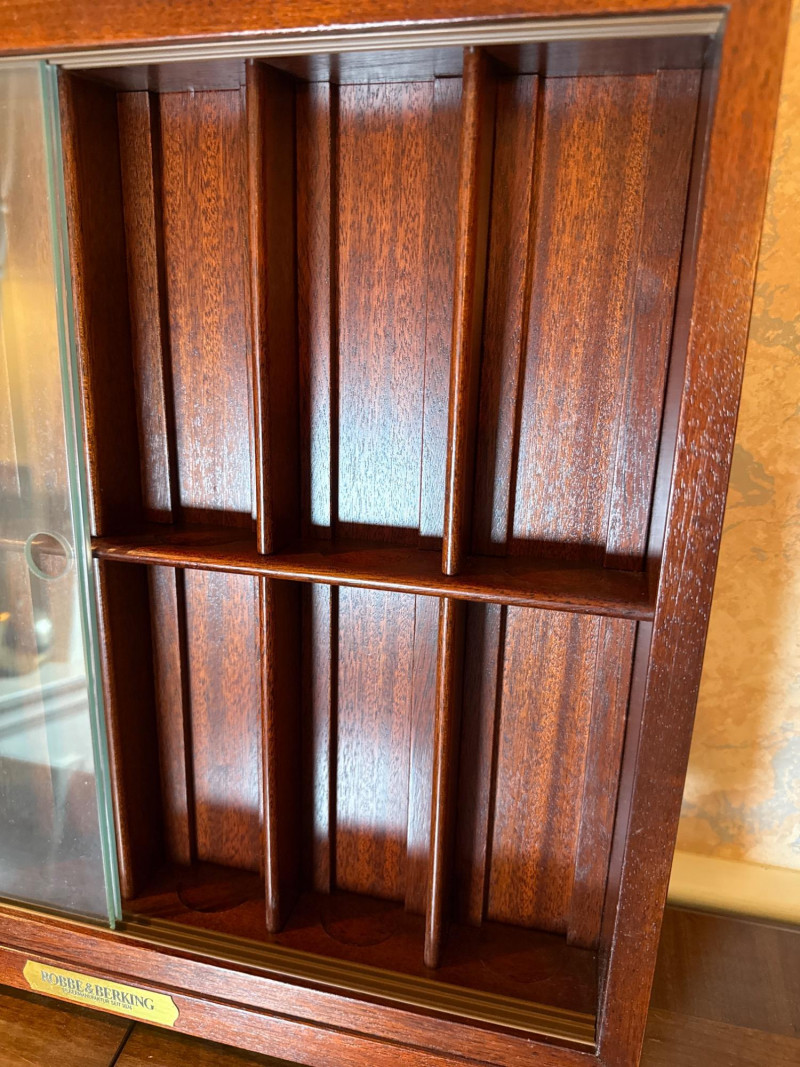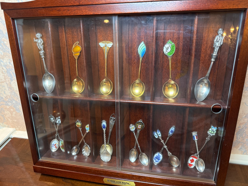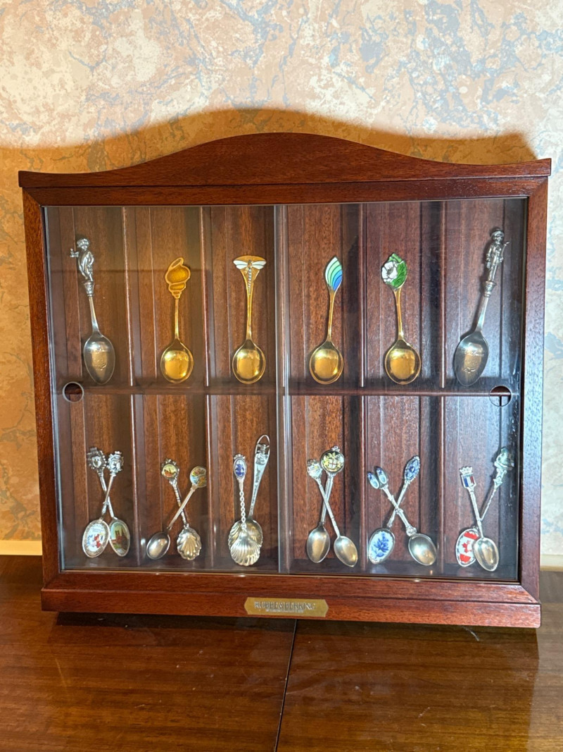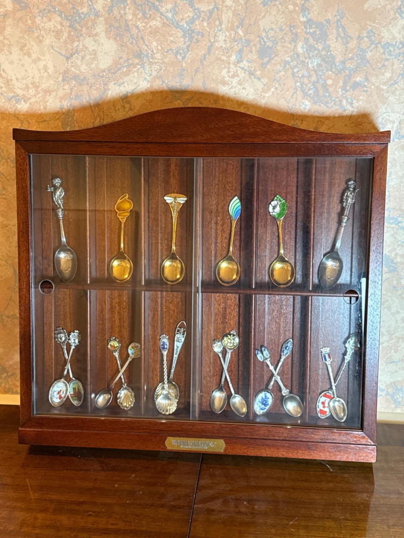 Lot # 107 - Robbe & Berking Wooden Display Cabinet with Collector Spoons